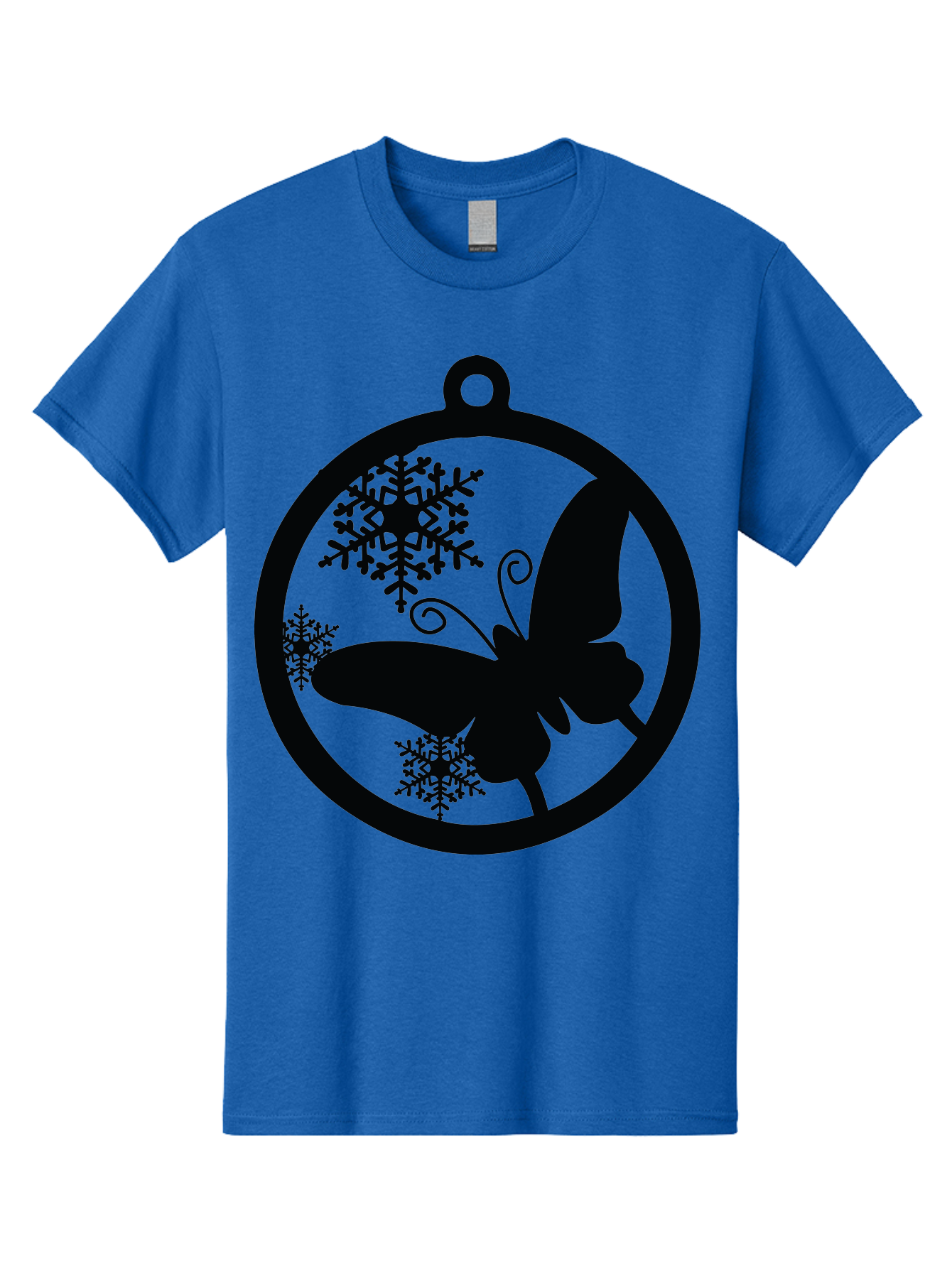 butterfly-ornament Men's Graphic Tee, 100% Cotton, Comfortable Casual Summer Wear, Machine Washable, Butterfly, Snowflakes, Ornament, Winter Decor, Festive Design, Holiday Theme, Delicate Patterns, Intricate Details, Christmas Decoration AAC553