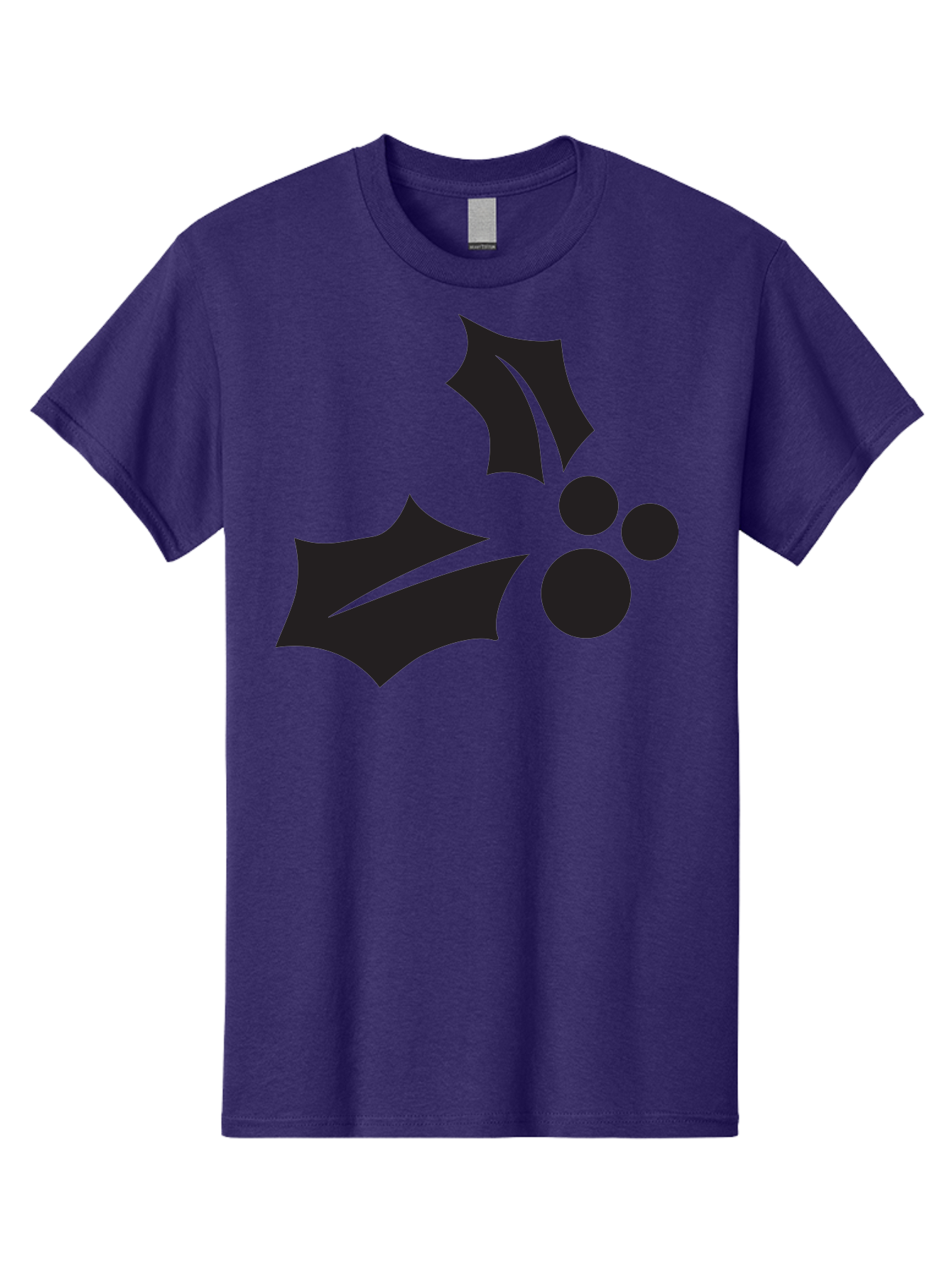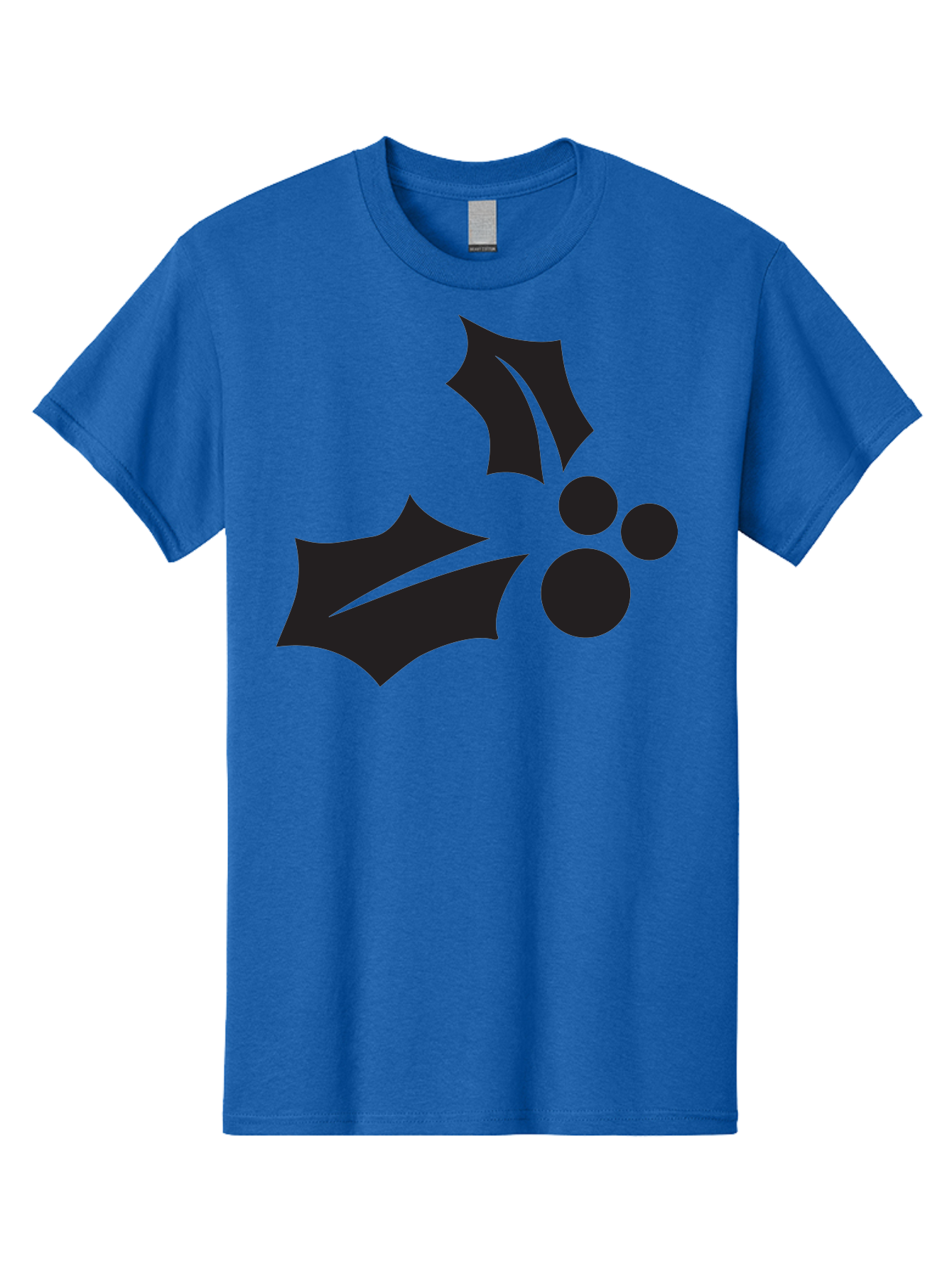 holly-leaves-and-berries Men's Graphic Tee, 100% Cotton, Comfortable Casual Summer Wear, Machine Washable, Holiday Holly, Christmas Leaves, Festive Berries, Black Silhouette, Minimalist Design, Winter Decor, Seasonal Graphics AAC823