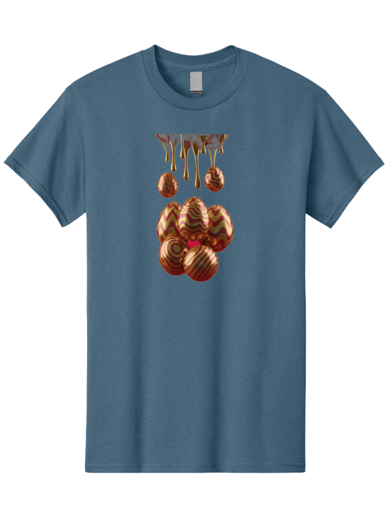 chocolate-easter-eggs Men's Graphic Tee, 100% Cotton, Comfortable Casual Summer Wear, Machine Washable, chocolate covered eggs, patterned eggs, dripping chocolate, decadent treats, sweet indulgence, rich desserts, chocolate lovers, sweet tooth BAA309