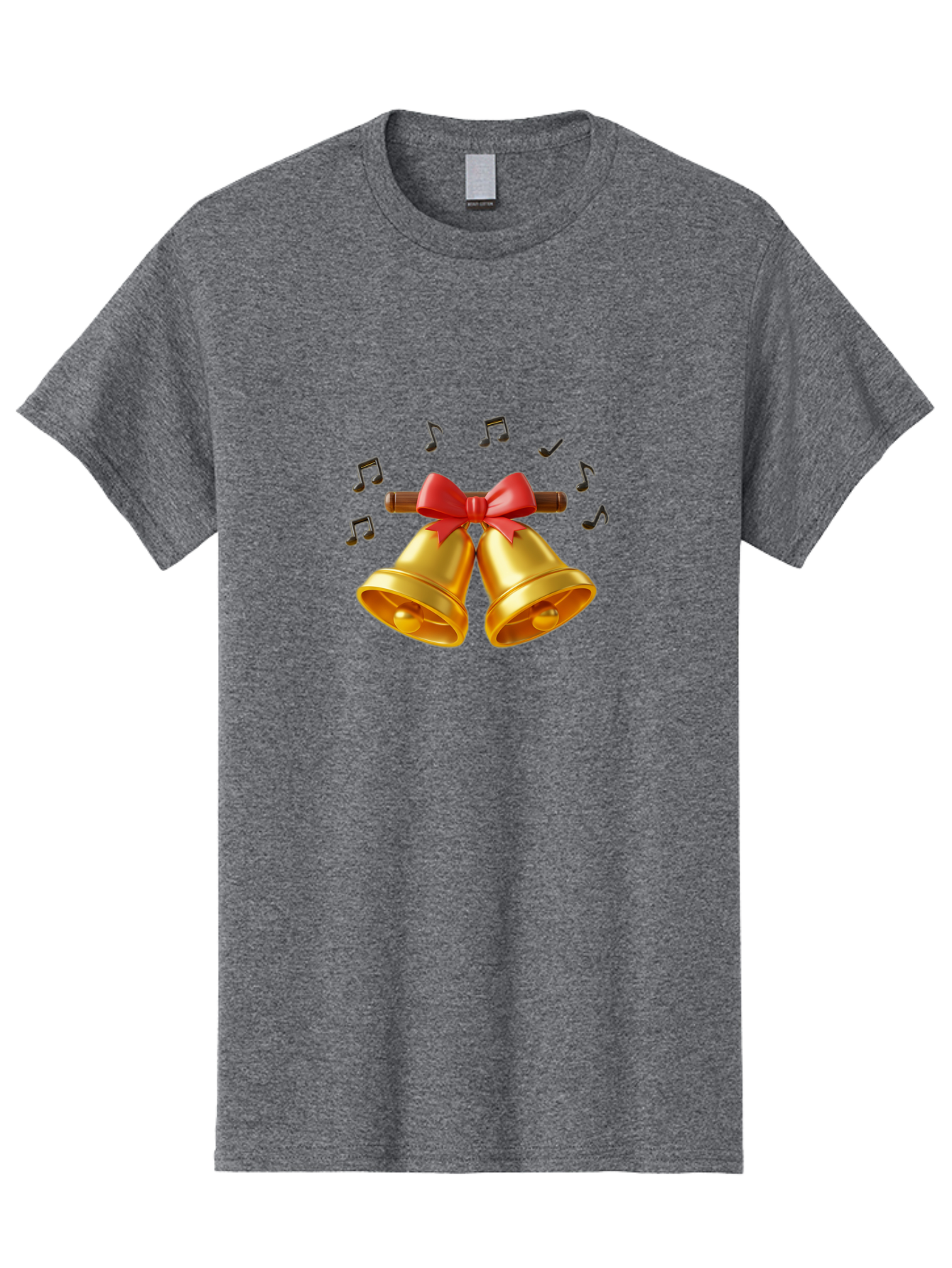 christmas-bells-1 Men's Graphic Tee, 100% Cotton, Comfortable Casual Summer Wear, Machine Washable, golden christmas bells, red bow, festive decor, holiday season, jingling sound, musical notes, celebration, joyful atmosphere, merry christmas, festive ambiance BAA313