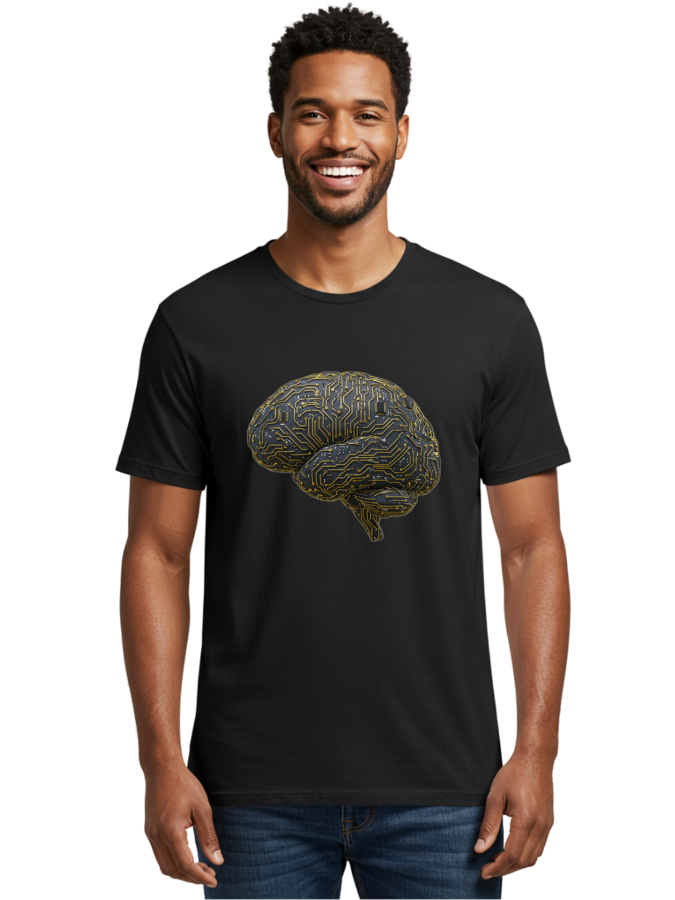 circuit-brain Men's Graphic Tee, 100% Cotton, Comfortable Casual Summer Wear, Machine Washable, human brain, circuit board, artificial intelligence, neural networks, cognitive computing, machine learning, futuristic technology BAA319