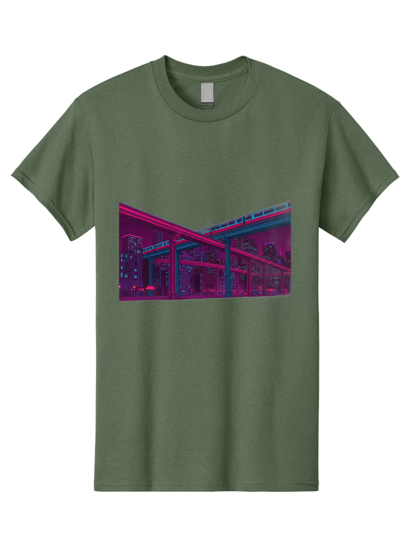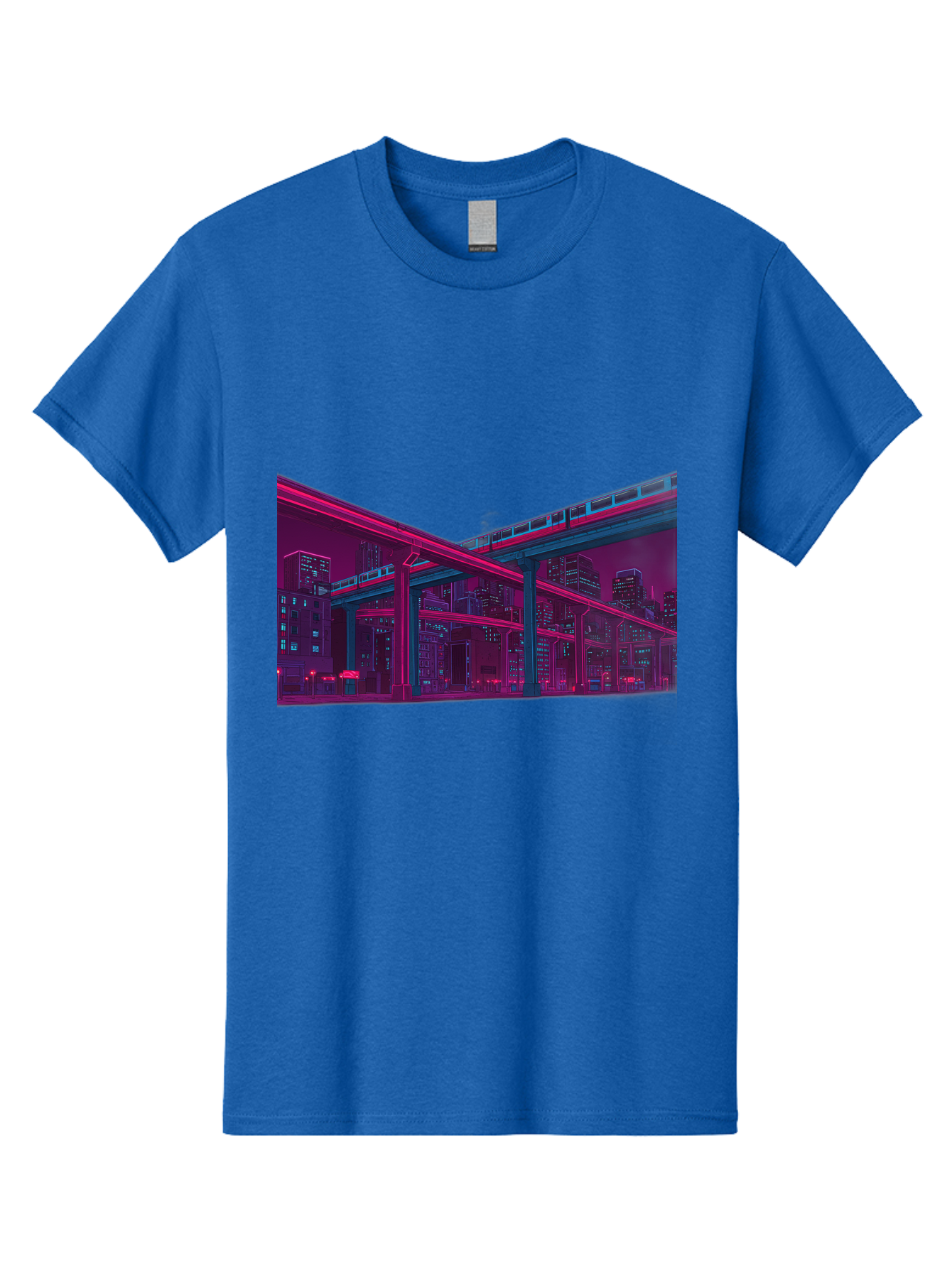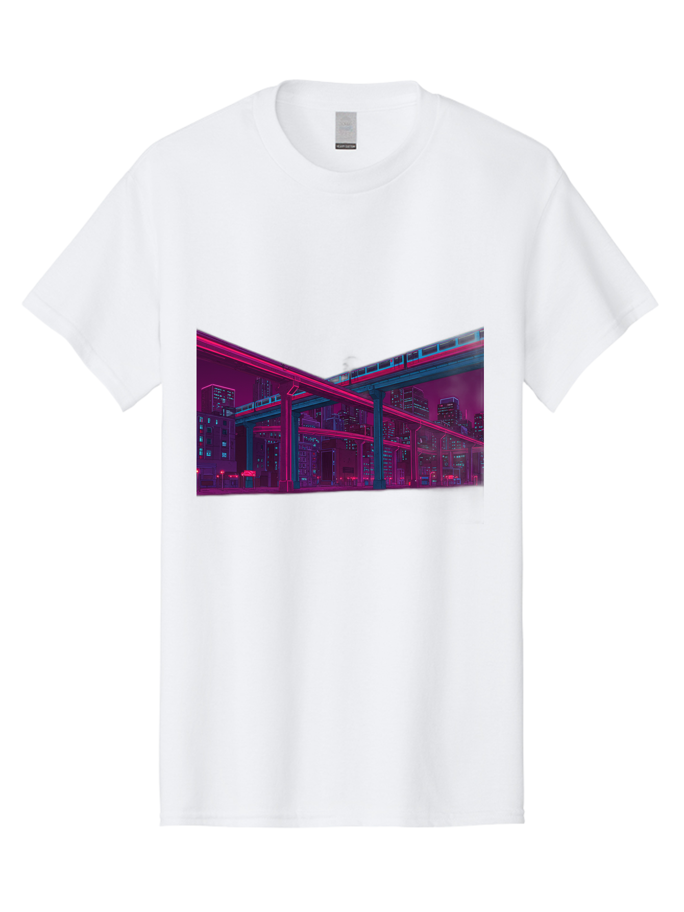 cityscape Men's Graphic Tee, 100% Cotton, Comfortable Casual Summer Wear, Machine Washable, cityscape at night, urban landscape, neon lights, city buildings, highway, train, futuristic architecture, modern city life, city view BAA322