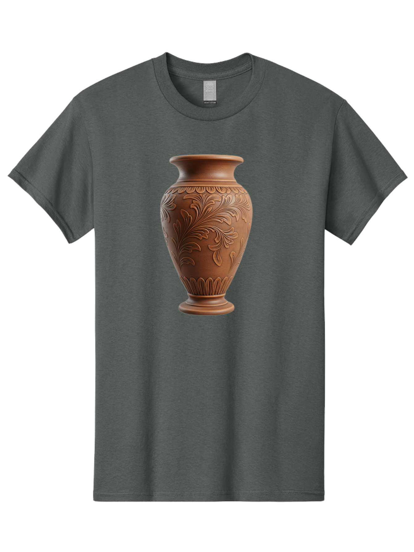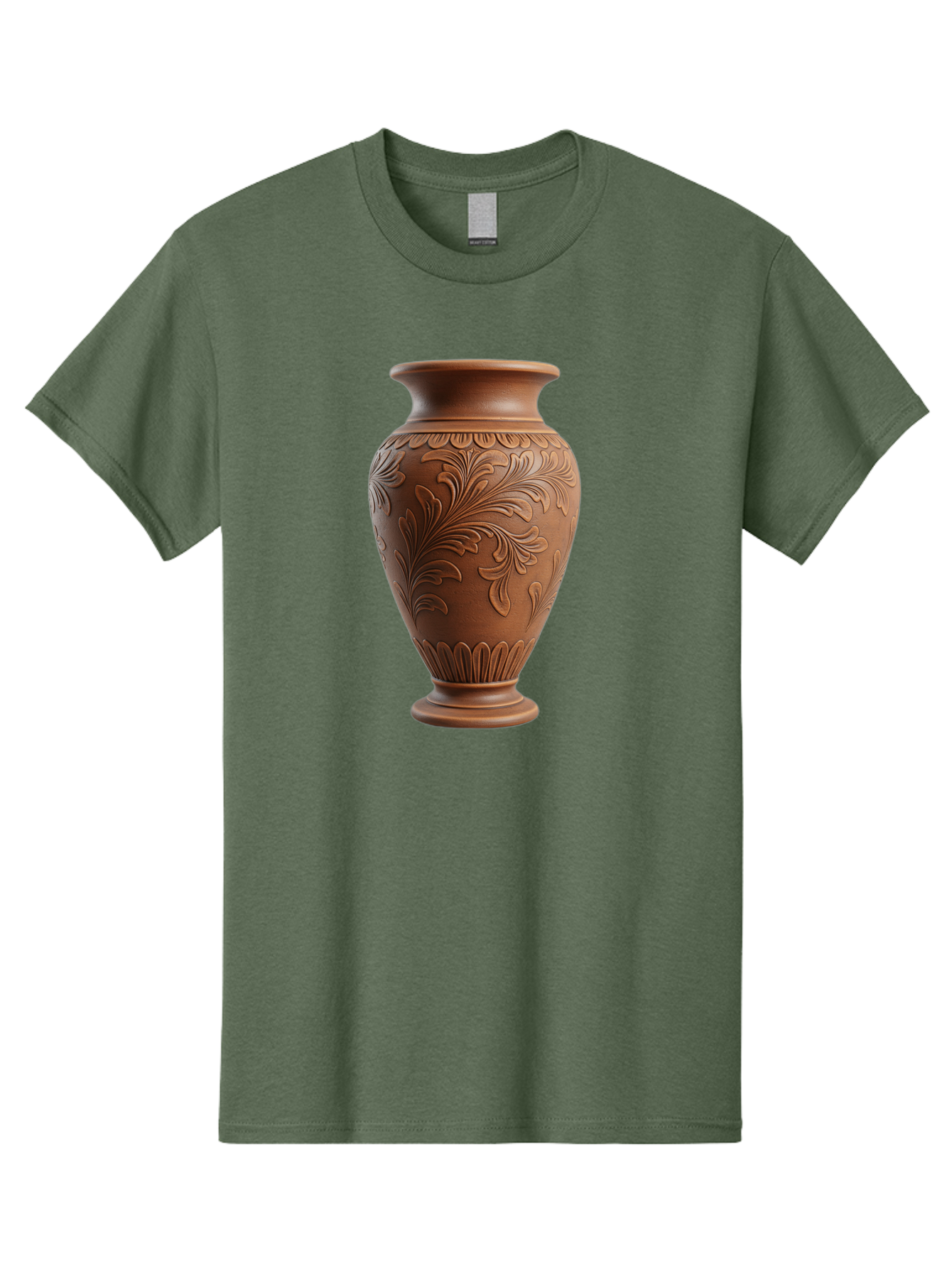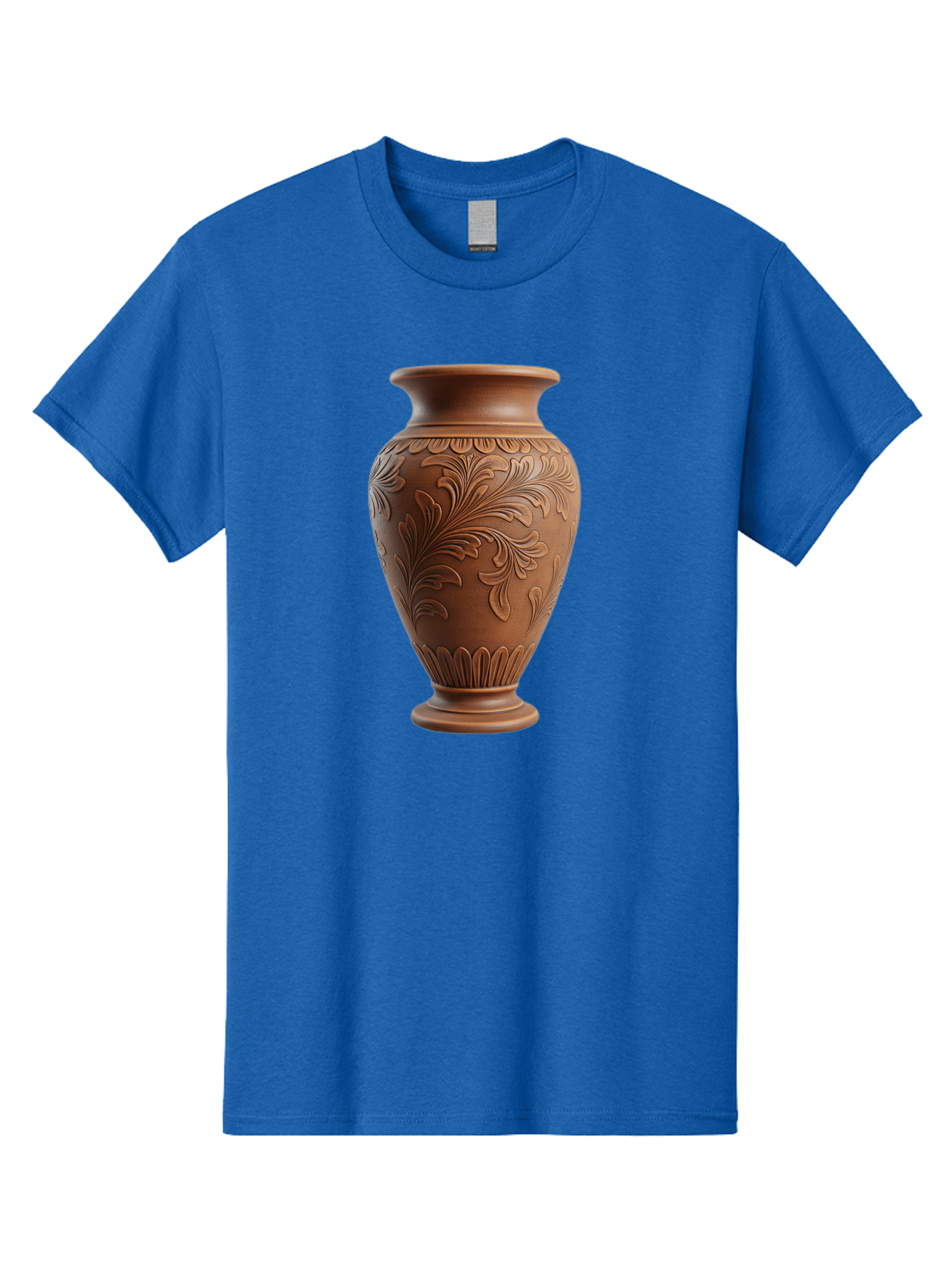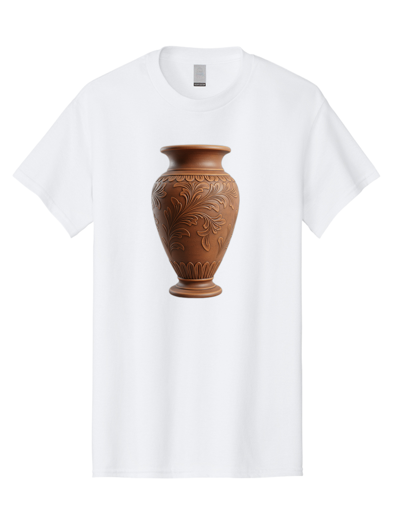clay-vase-with-floral-pattern Men's Graphic Tee, 100% Cotton, Comfortable Casual Summer Wear, Machine Washable, terracotta vase, clay pottery, ornate design, floral pattern, traditional craftsmanship, earthy tones, vintage decor, home decor, indoor plants, decorative vase BAA331