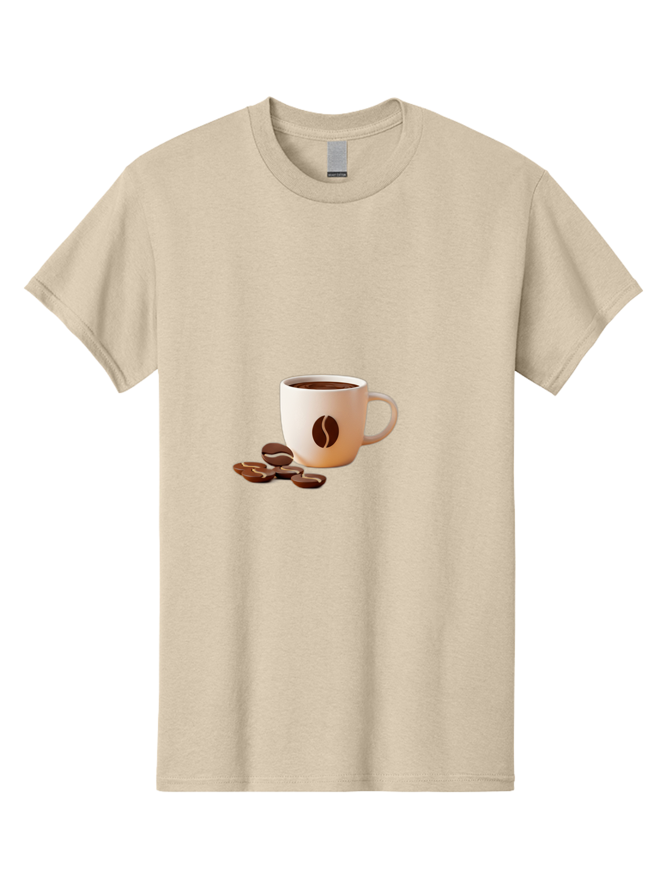 coffee-bean-mug Men's Graphic Tee, 100% Cotton, Comfortable Casual Summer Wear, Machine Washable, coffee mug, coffee beans, dark brown coffee, morning coffee, coffee break, coffee time, coffee symbol, coffee design BAA335
