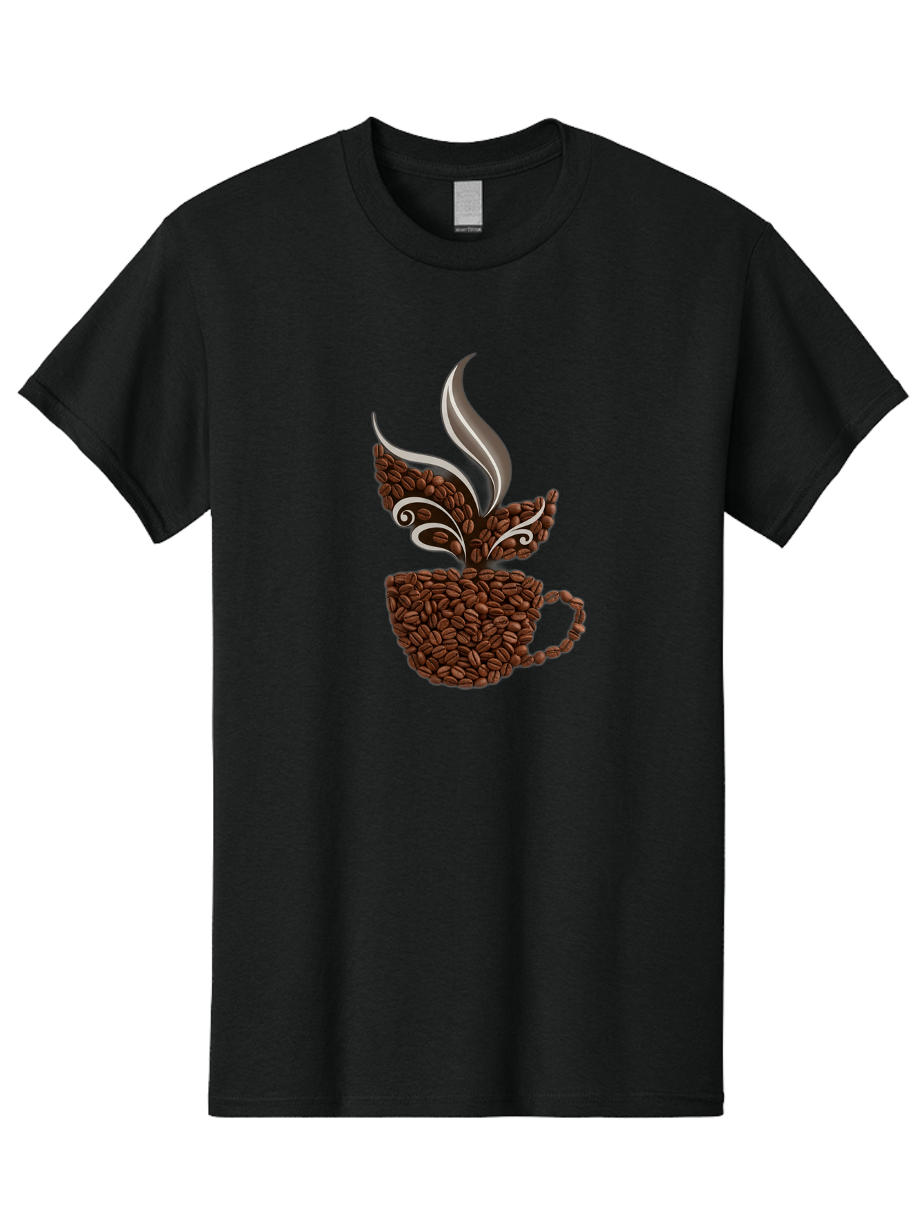 coffee-beans-cup Men's Graphic Tee, 100% Cotton, Comfortable Casual Summer Wear, Machine Washable, coffee beans, coffee cup, brewing coffee, warm beverage, morning pick-me-up, coffee break, coffee lover, coffee art, steaming hot BAA338