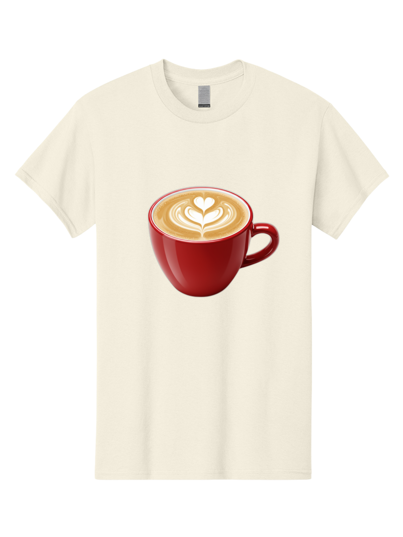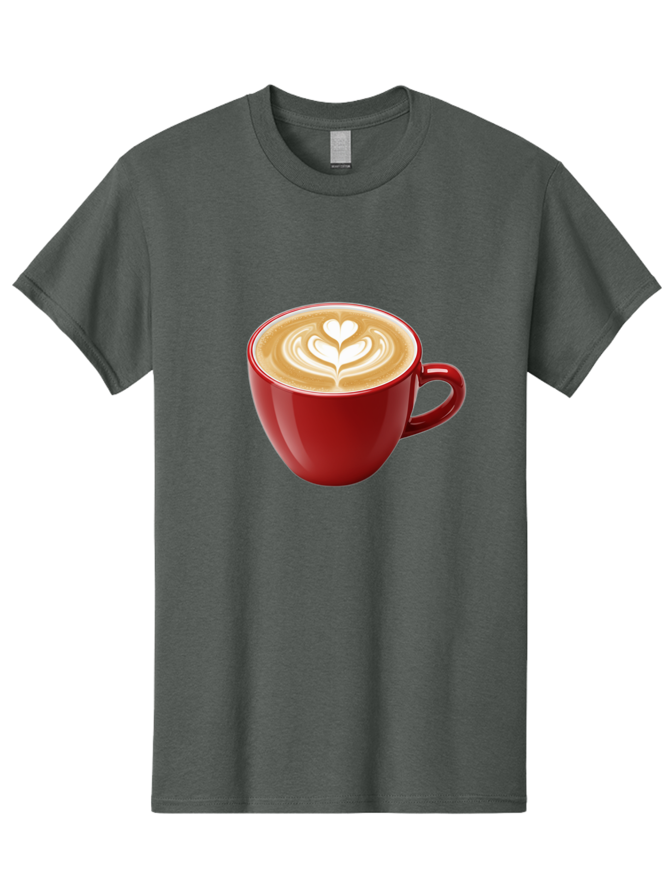 coffee-cup-16 Men's Graphic Tee, 100% Cotton, Comfortable Casual Summer Wear, Machine Washable, coffee cup, latte art, heart design, red coffee mug, crema-topped coffee, coffee drink, espresso art BAA350