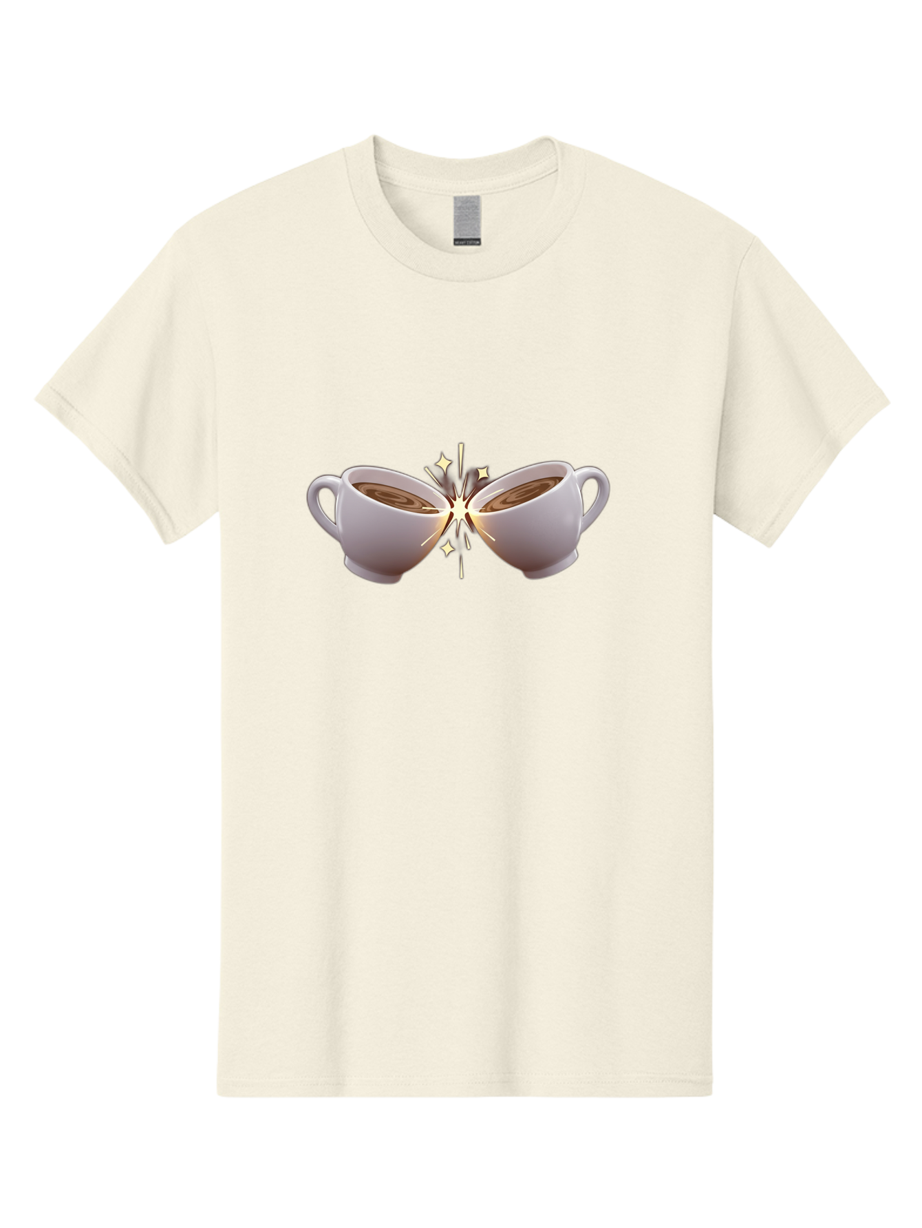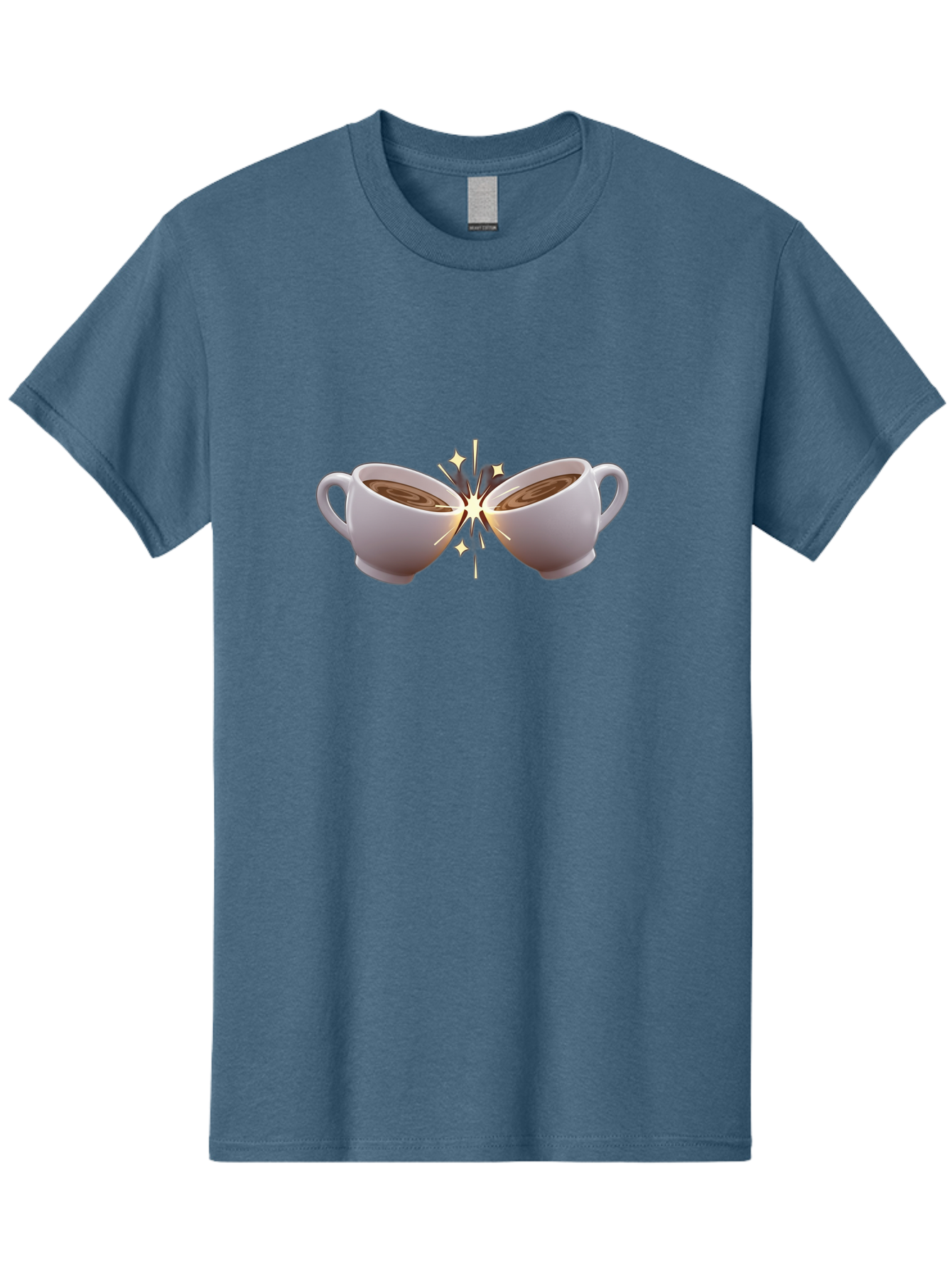 cups-cheering Men's Graphic Tee, 100% Cotton, Comfortable Casual Summer Wear, Machine Washable, coffee cups clinking, frothy coffee, warm beverage, social gathering, friendship, toast, celebration, coffee culture, caffeine BAA426