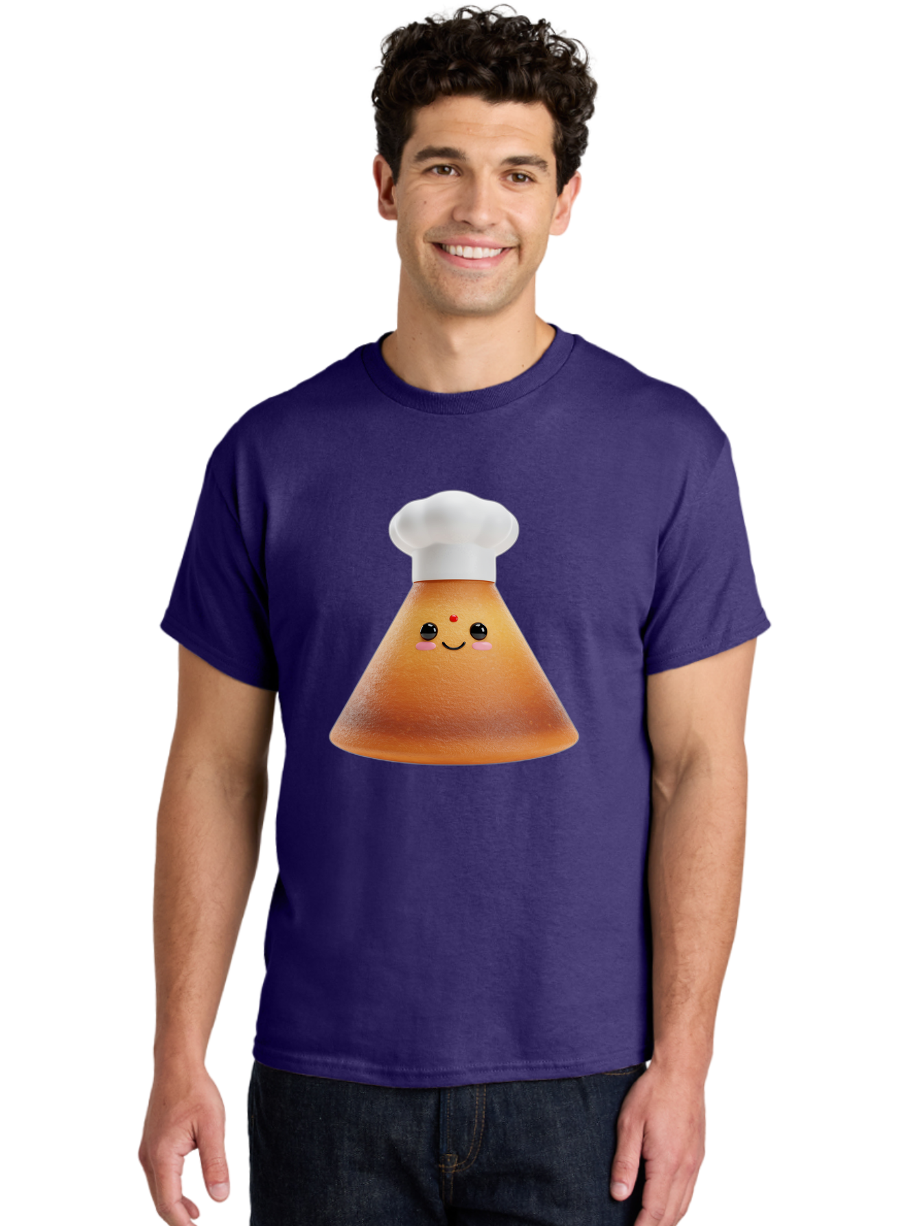 cute-cone-dosa Men's Graphic Tee, 100% Cotton, Comfortable Casual Summer Wear, Machine Washable, cartoon character, Indian cuisine, chef hat, conical shape, smiling face, red bindi, cute expression, rosy cheeks, playful vibe, digital illustration, anime style BAA435