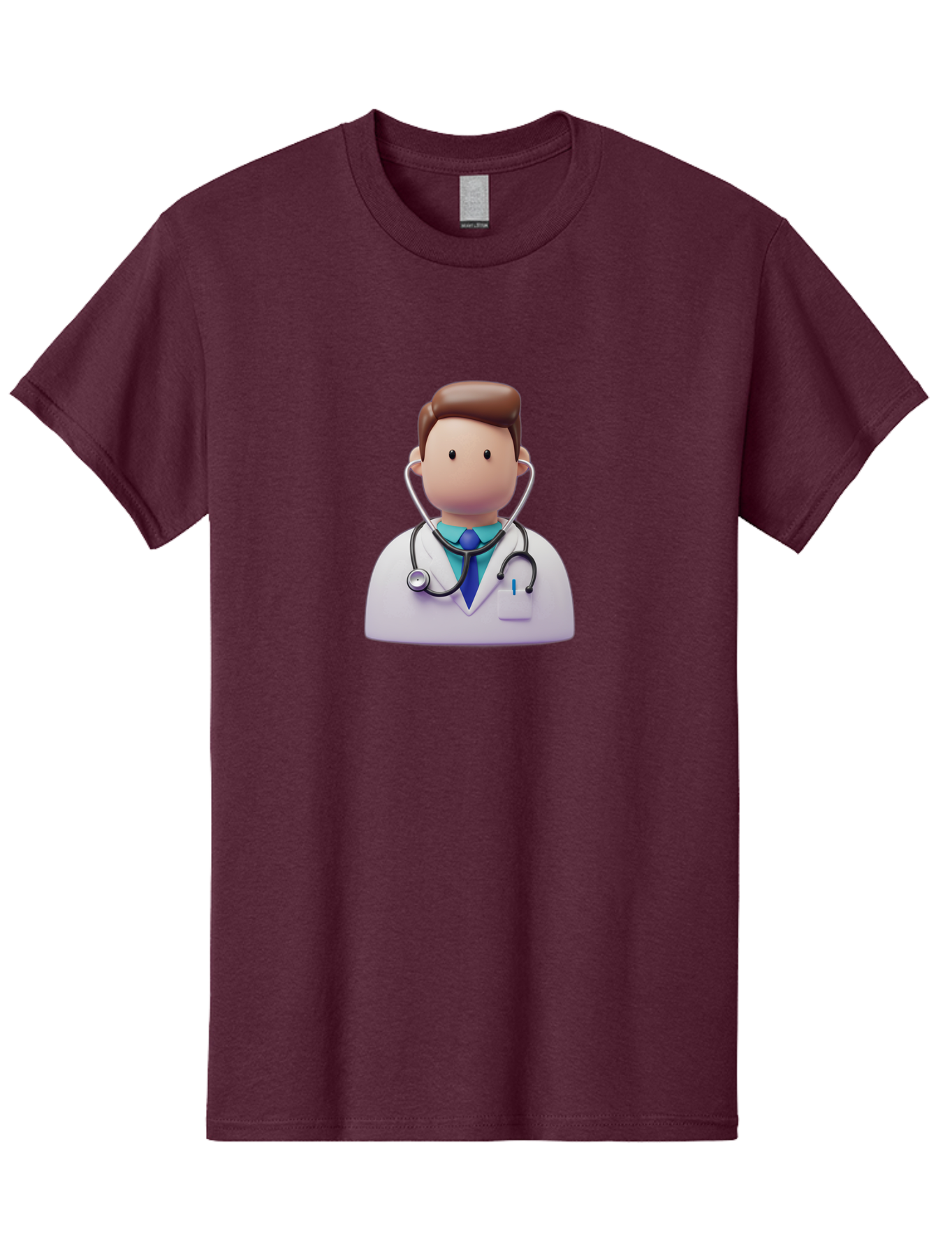 doctor-character-2 Men's Graphic Tee, 100% Cotton, Comfortable Casual Summer Wear, Machine Washable, cartoon doctor, medical professional, stethoscope, white coat, blue tie, health care, medical illustration, 3D character, healthcare worker, medical staff BAA469