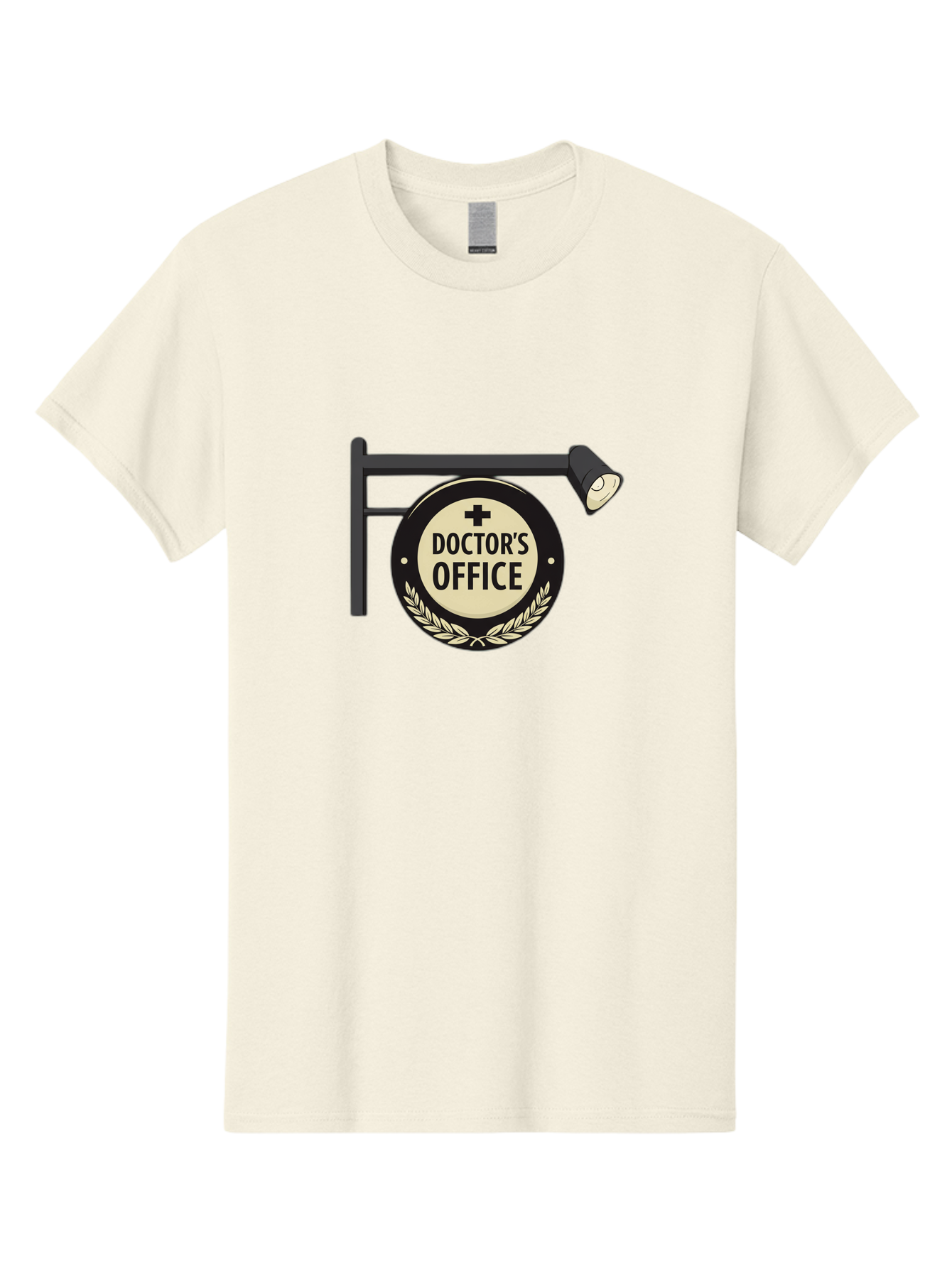 doctor-s-office-4 Men's Graphic Tee, 100% Cotton, Comfortable Casual Summer Wear, Machine Washable, doctor's office sign, hanging sign, medical cross, white laurel wreath, black metal pole, spotlight, medical office, healthcare, medical services BAA479