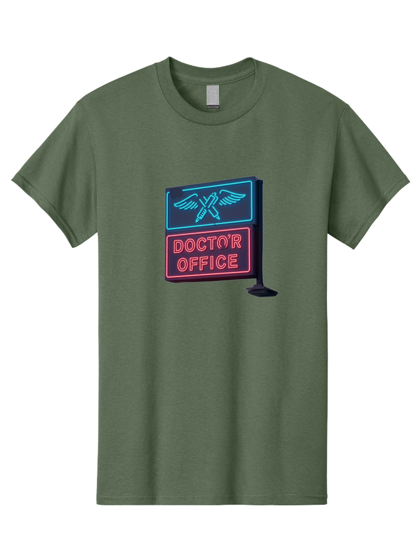 Doctor-S-Office-Neon-Sign Men'S Graphic Tee, 100% Cotton, Comfortable Casual Summer Wear, Machine Washable, Neon Sign, Doctor'S Office Sign, Medical Symbol, Crossed Syringes, Winged Design, Clinic Signage, Medical Office Decor, Baa481