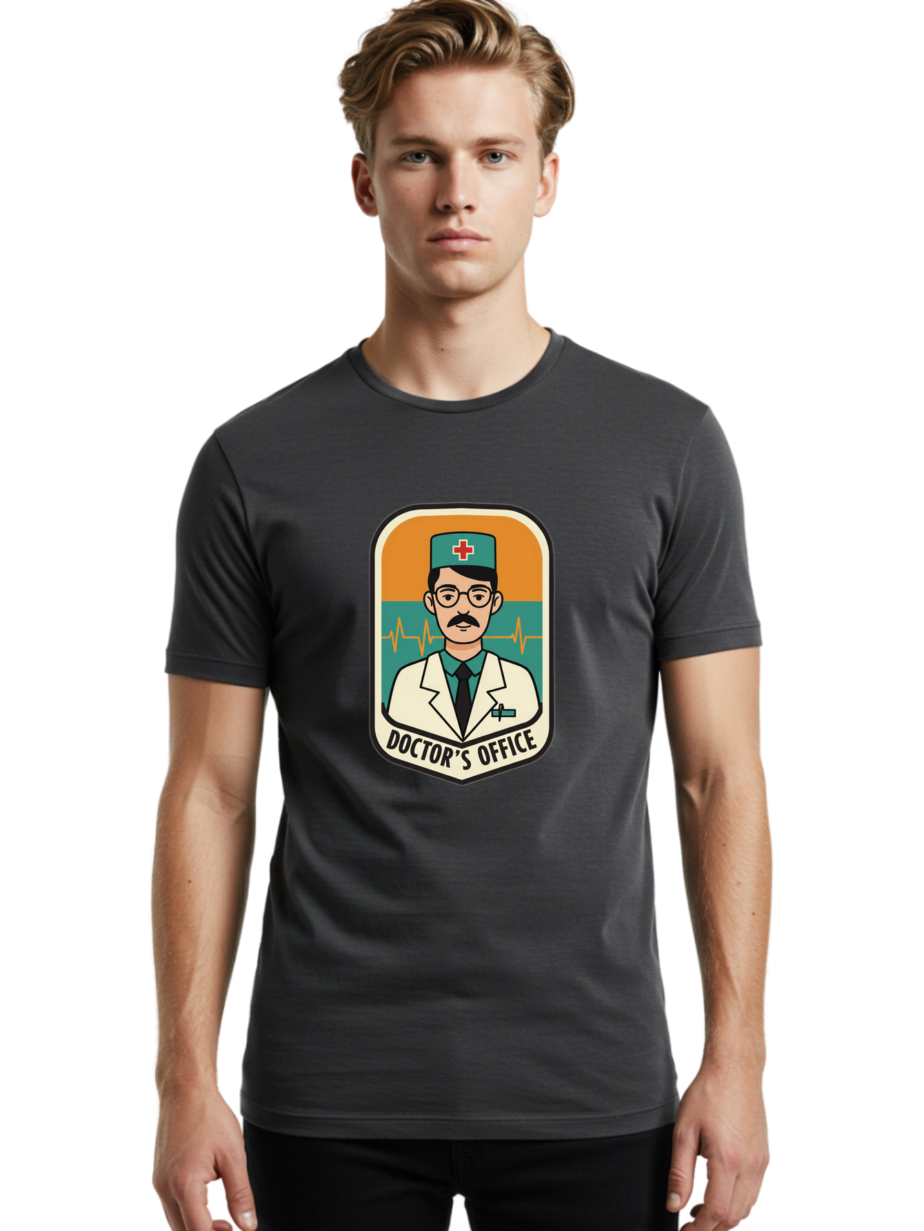doctor-s-office Men's Graphic Tee, 100% Cotton, Comfortable Casual Summer Wear, Machine Washable, male doctor, medical professional, doctor's office, healthcare services, medical checkup, health monitoring, ECG reading, medical staff, health care BAA482