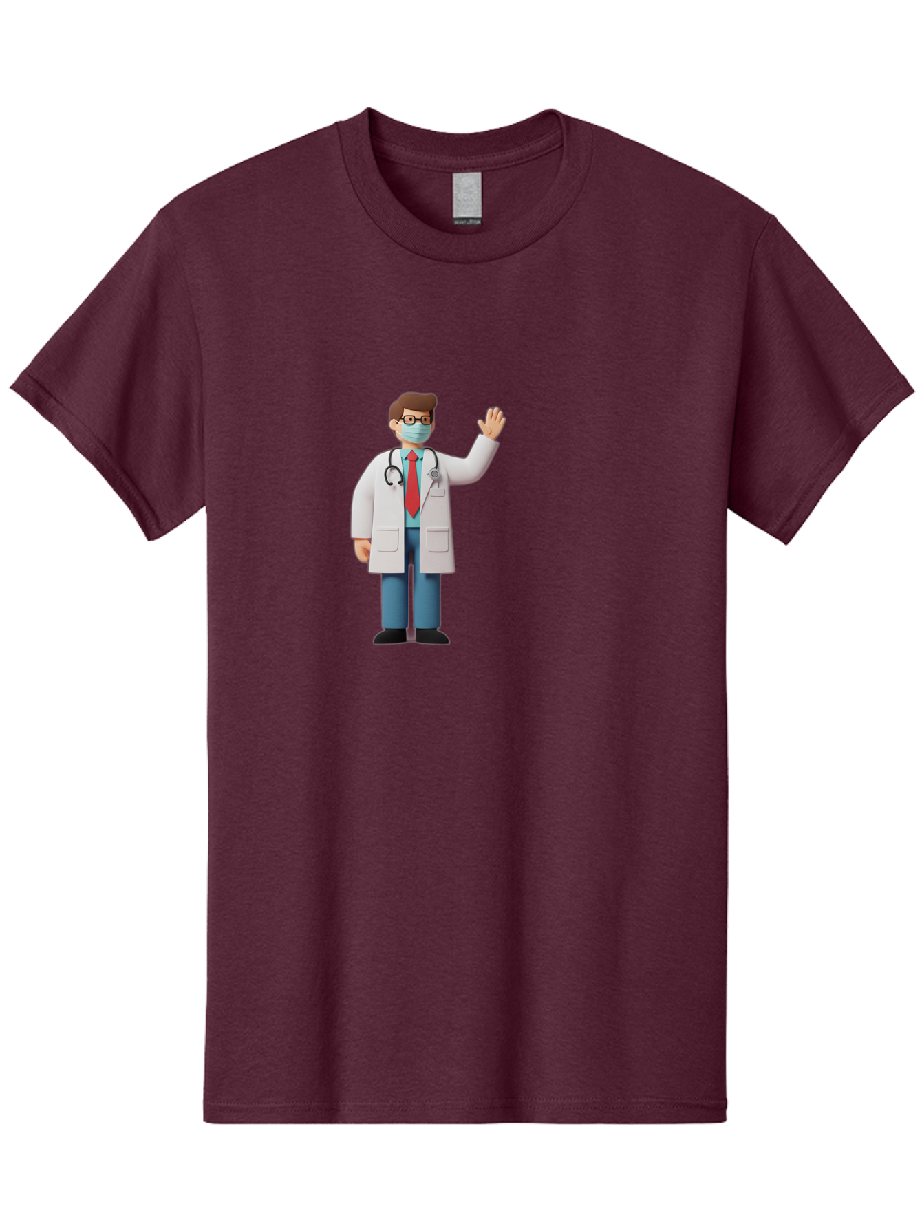 doctor-waving-3 Men's Graphic Tee, 100% Cotton, Comfortable Casual Summer Wear, Machine Washable, doctor wearing a mask, waving hand, medical professional, healthcare worker, stethoscope around neck, friendly gesture, cartoon style, medical illustration, health care, medical care BAA486