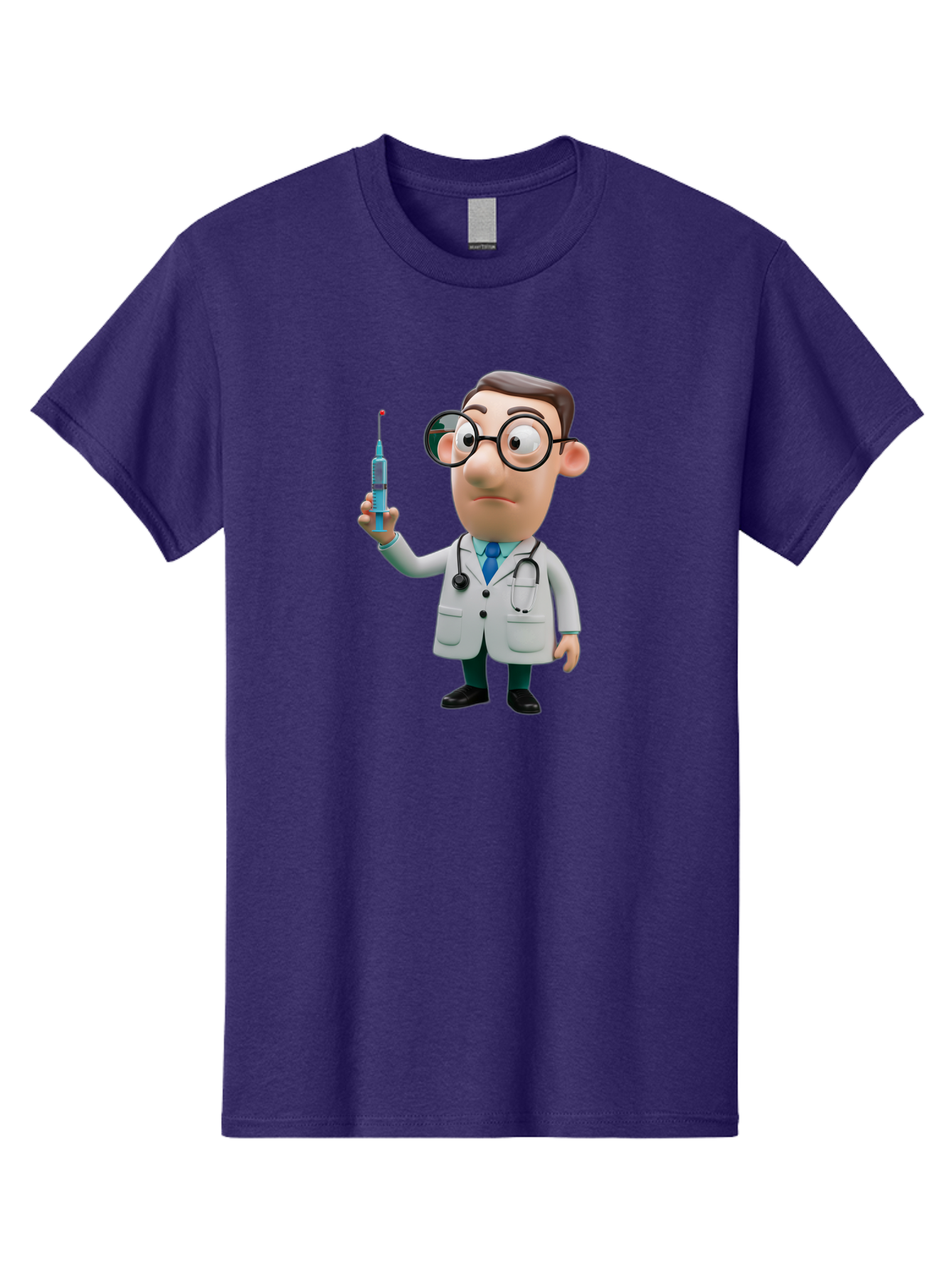 Doctor-With-Syringe Men'S Graphic Tee, 100% Cotton, Comfortable Casual Summer Wear, Machine Washable, Cartoon Doctor, Medical Professional, Syringe Injection, Healthcare Worker, Vaccination, Medicine, Doctor Character, Medical Illustration, Baa492