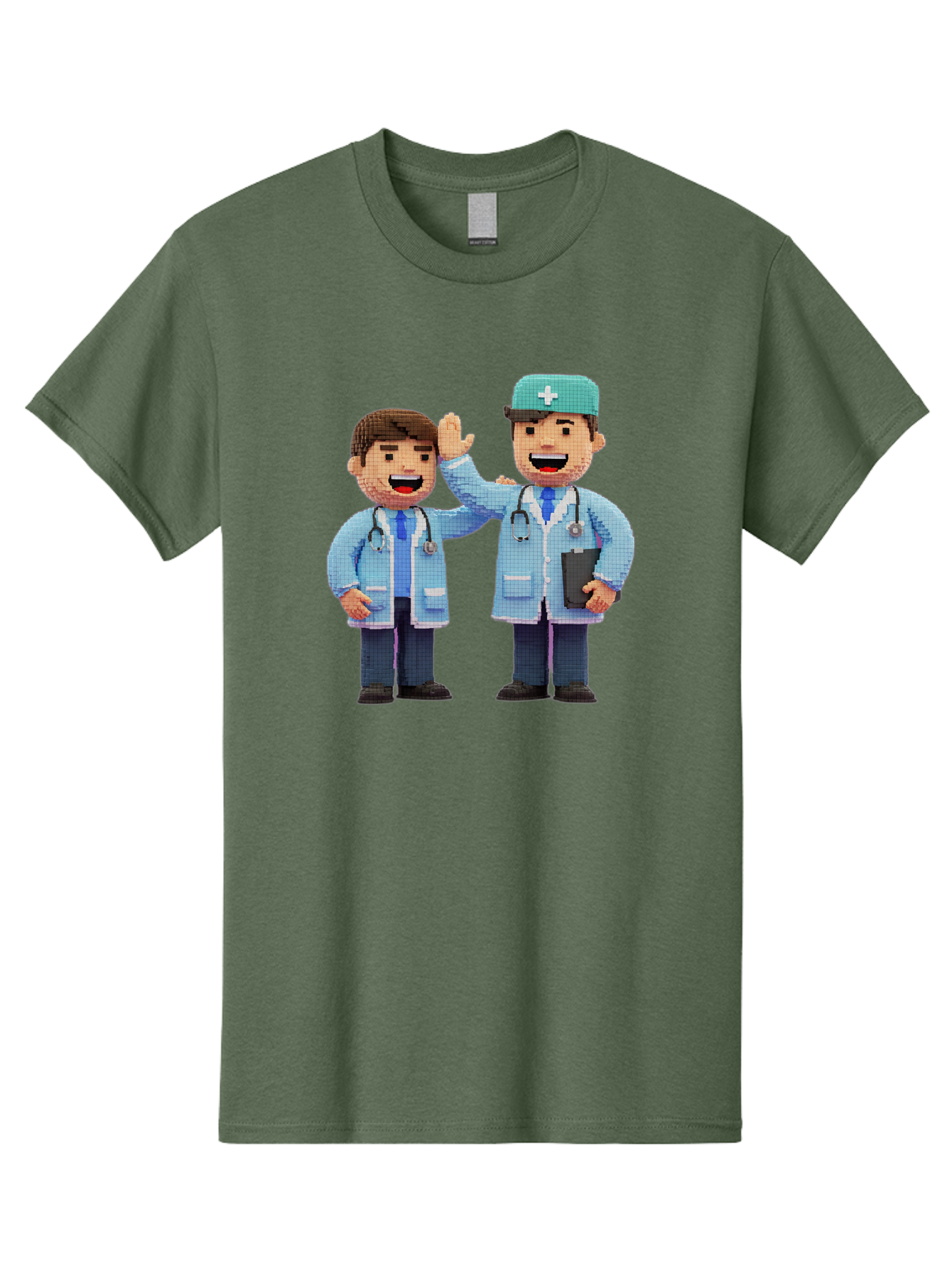 doctors Men's Graphic Tee, 100% Cotton, Comfortable Casual Summer Wear, Machine Washable, doctors high fiving, medical professionals, healthcare workers, pixel art, stethoscope, doctor's coat, friendly gesture, teamwork BAA494
