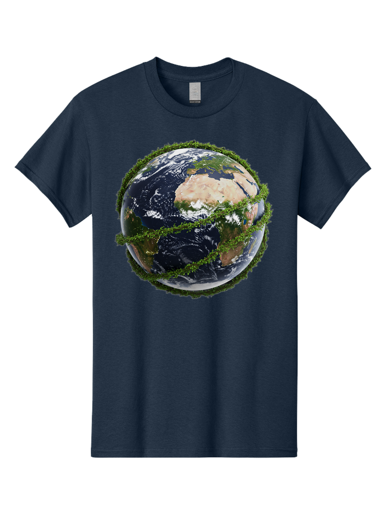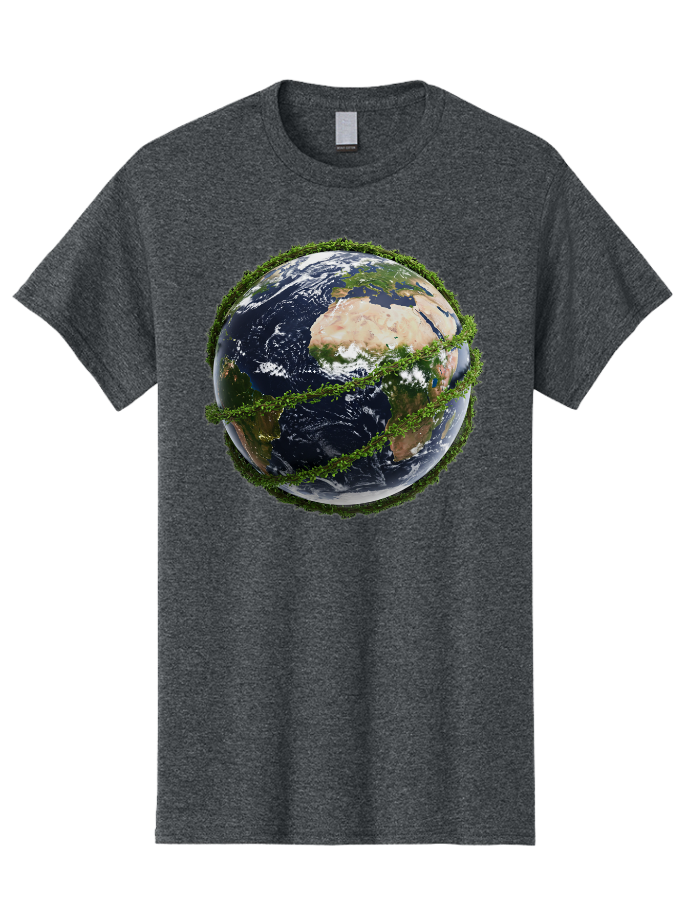 earth-with-foliage Men's Graphic Tee, 100% Cotton, Comfortable Casual Summer Wear, Machine Washable, globe surrounded by greenery, earth from space, environmental conservation, global unity, sustainable living, eco-friendly, planet earth, lush vegetation, natural resources BAA587