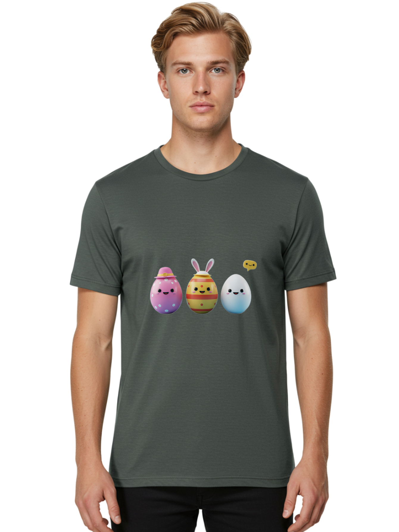 easter-eggs-1 Men's Graphic Tee, 100% Cotton, Comfortable Casual Summer Wear, Machine Washable, cartoon easter eggs, colorful eggs, easter egg hunt, spring celebration, adorable characters, cute designs, easter egg characters, pastel colors, kawaii art BAA603