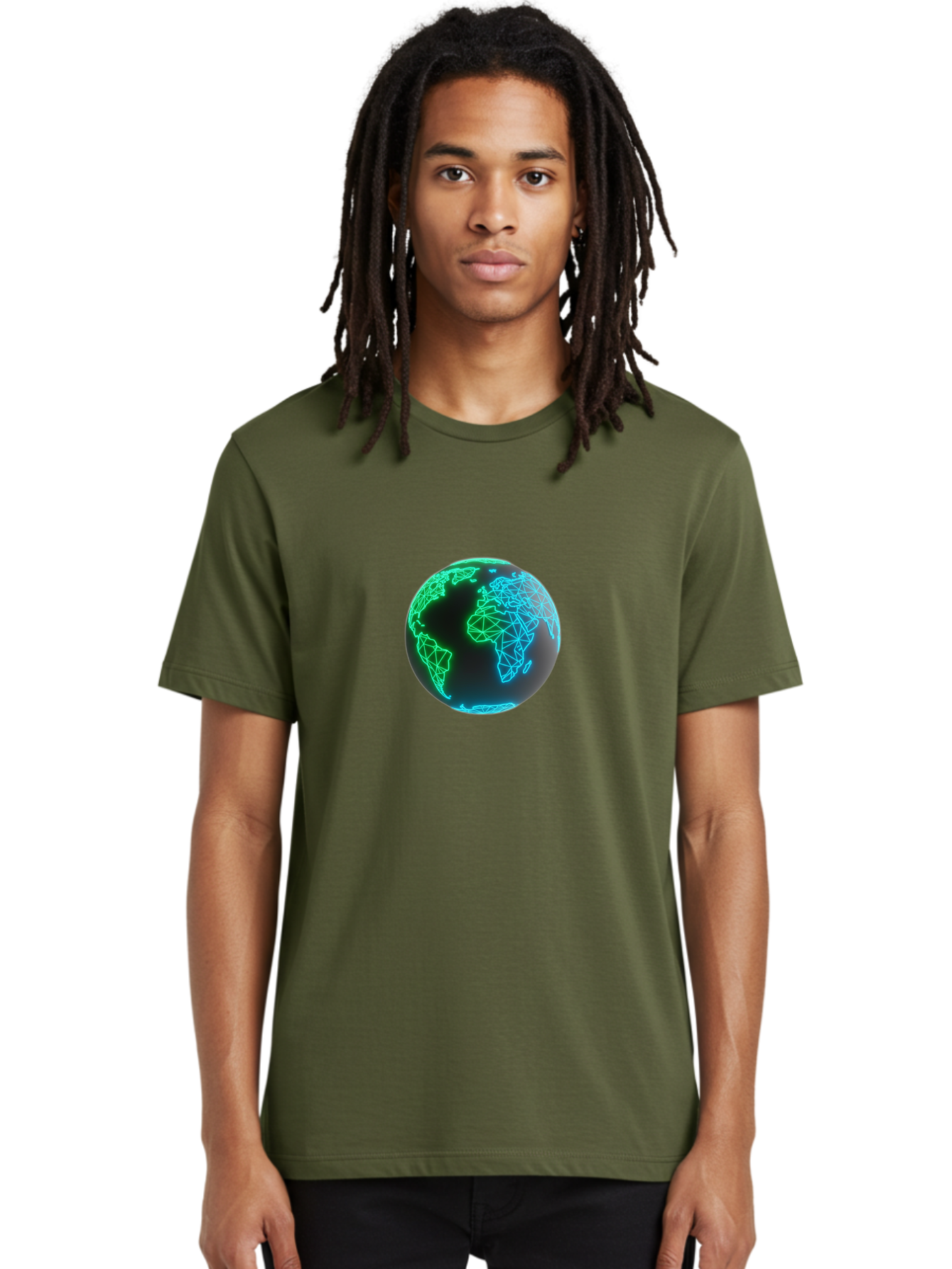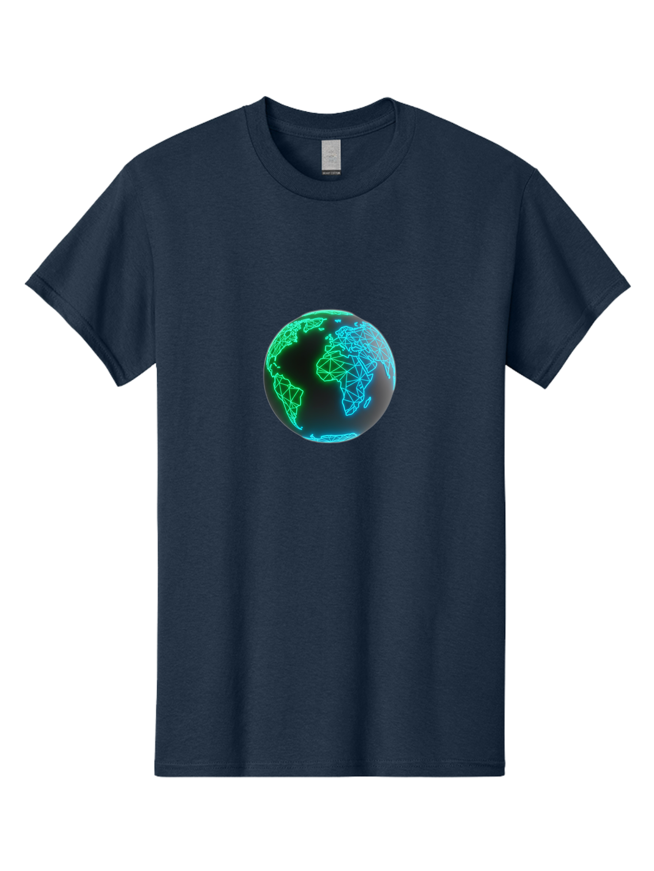 globe-10 Men's Graphic Tee, 100% Cotton, Comfortable Casual Summer Wear, Machine Washable, globe, world map, digital art, neon lights, blue and green hues, futuristic design, network connections, global unity, 3D rendering BAA739