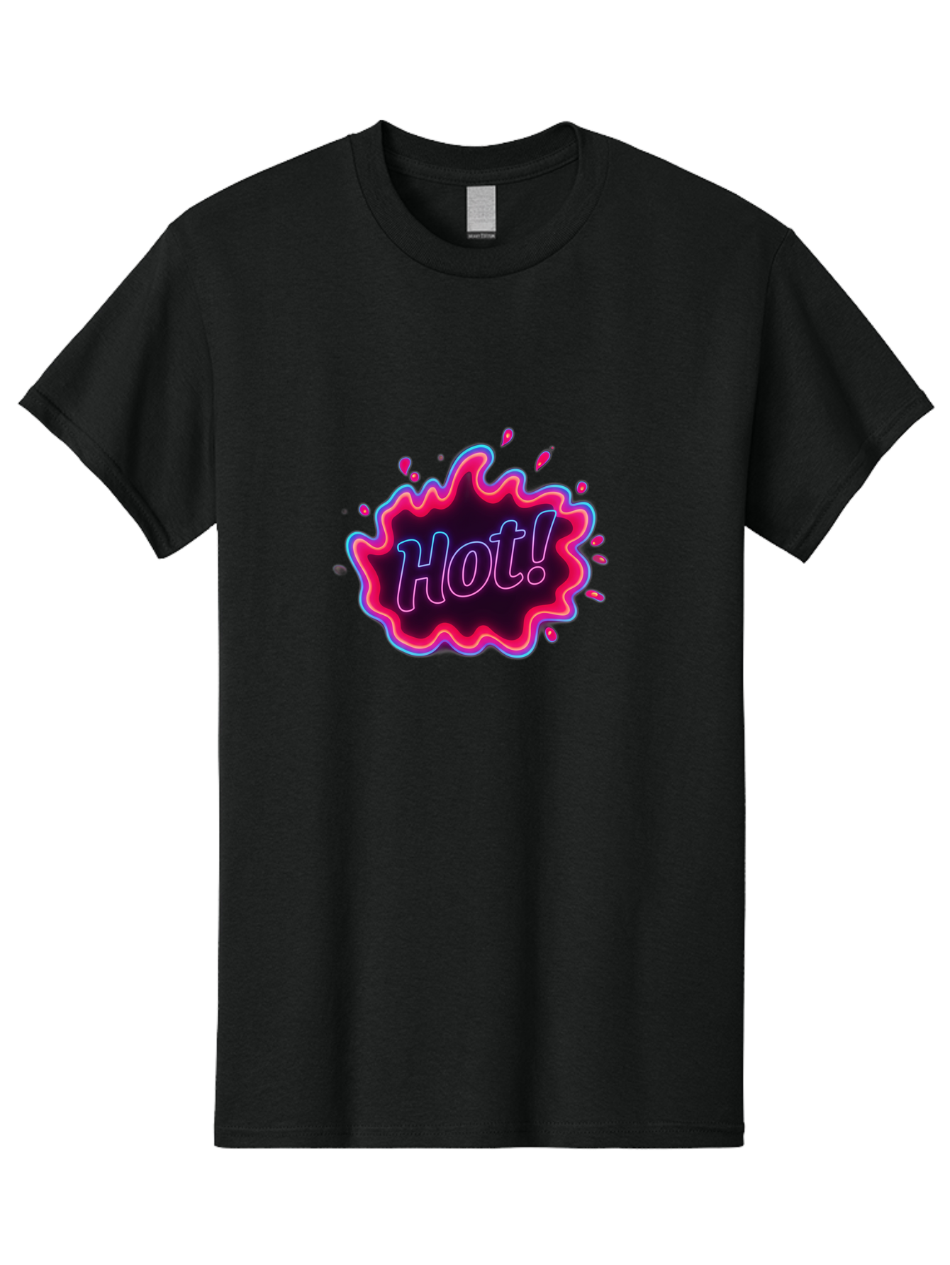 hot-4 Men's Graphic Tee, 100% Cotton, Comfortable Casual Summer Wear, Machine Washable, neon sign, hot sale, comic book style, pop art, vibrant pink, blue glow, dynamic graphics, attention-grabbing design, trendy visuals, energetic feel, hot deals BAA803