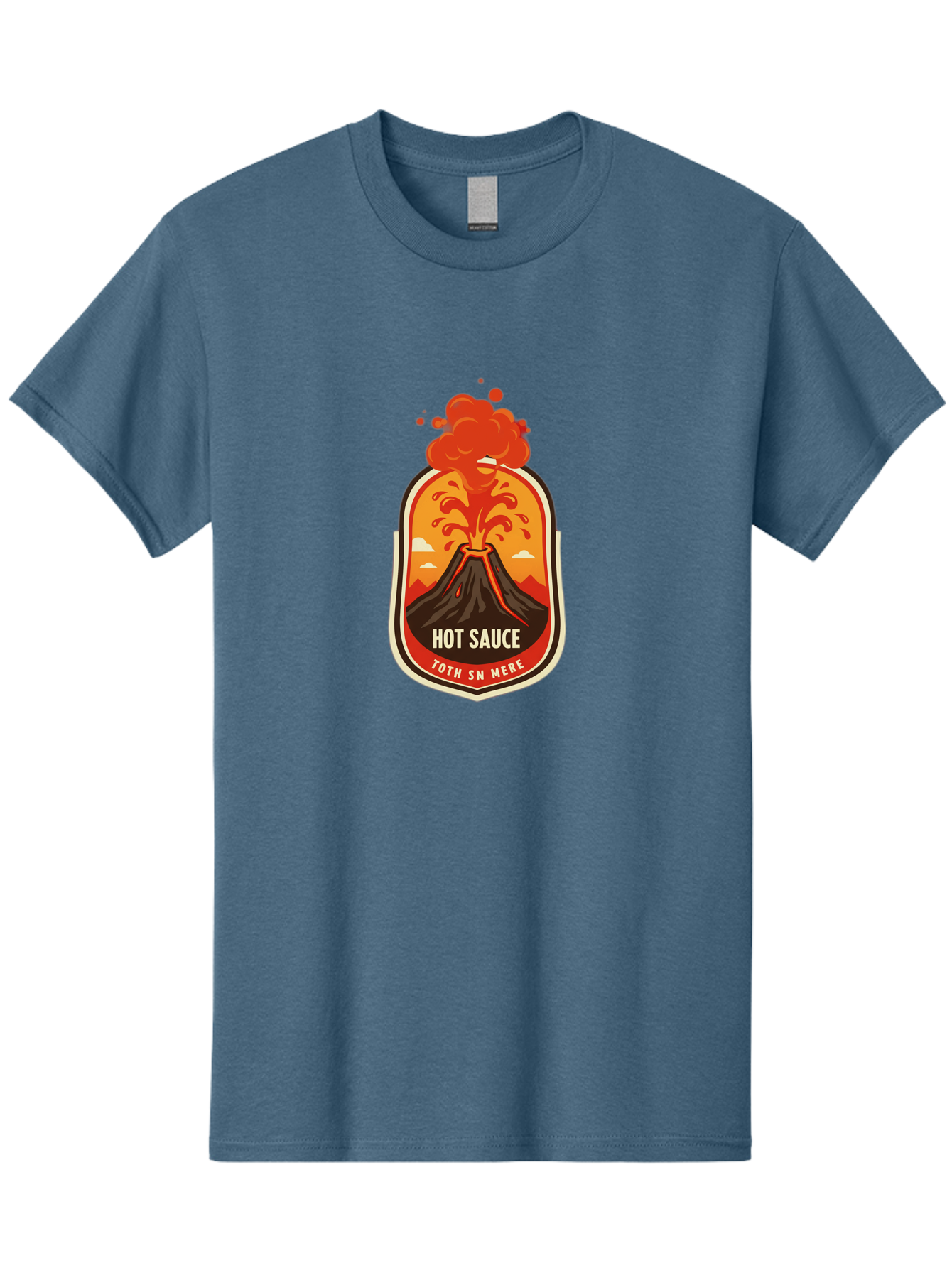 hot-sauce-8 Men's Graphic Tee, 100% Cotton, Comfortable Casual Summer Wear, Machine Washable, hot sauce label, erupting volcano, spicy food, condiment packaging, fiery design, bold graphics, cartoon style, volcano eruption, condiment branding BAA820