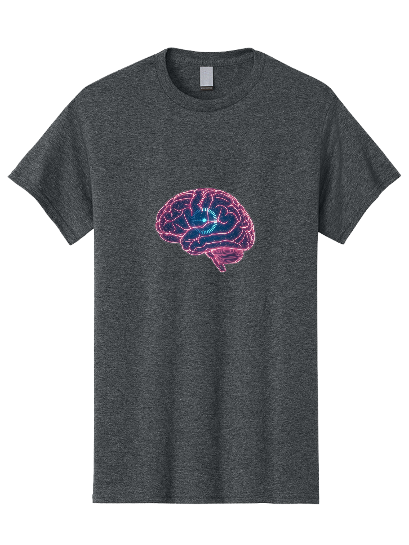 Human-Brain Men'S Graphic Tee, 100% Cotton, Comfortable Casual Summer Wear, Machine Washable, Human Brain, Cognitive Function, Neuroscience, Brain Function, Thought Process, Intelligence, Pink Outline, Blue Glow, Concentrated Thought Baa850