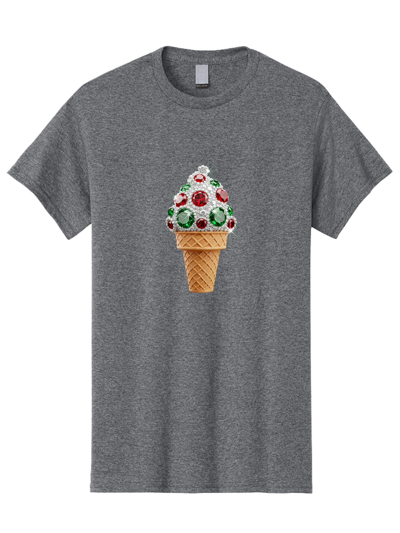 ice-cream-cone-with-jewels Men's Graphic Tee, 100% Cotton, Comfortable Casual Summer Wear, Machine Washable, ice cream cone, diamond encrusted, precious gems, red and green jewels, luxurious dessert, sweet treat, diamond ice cream, festive dessert, jewel-toned, sweet indulgence BAA874