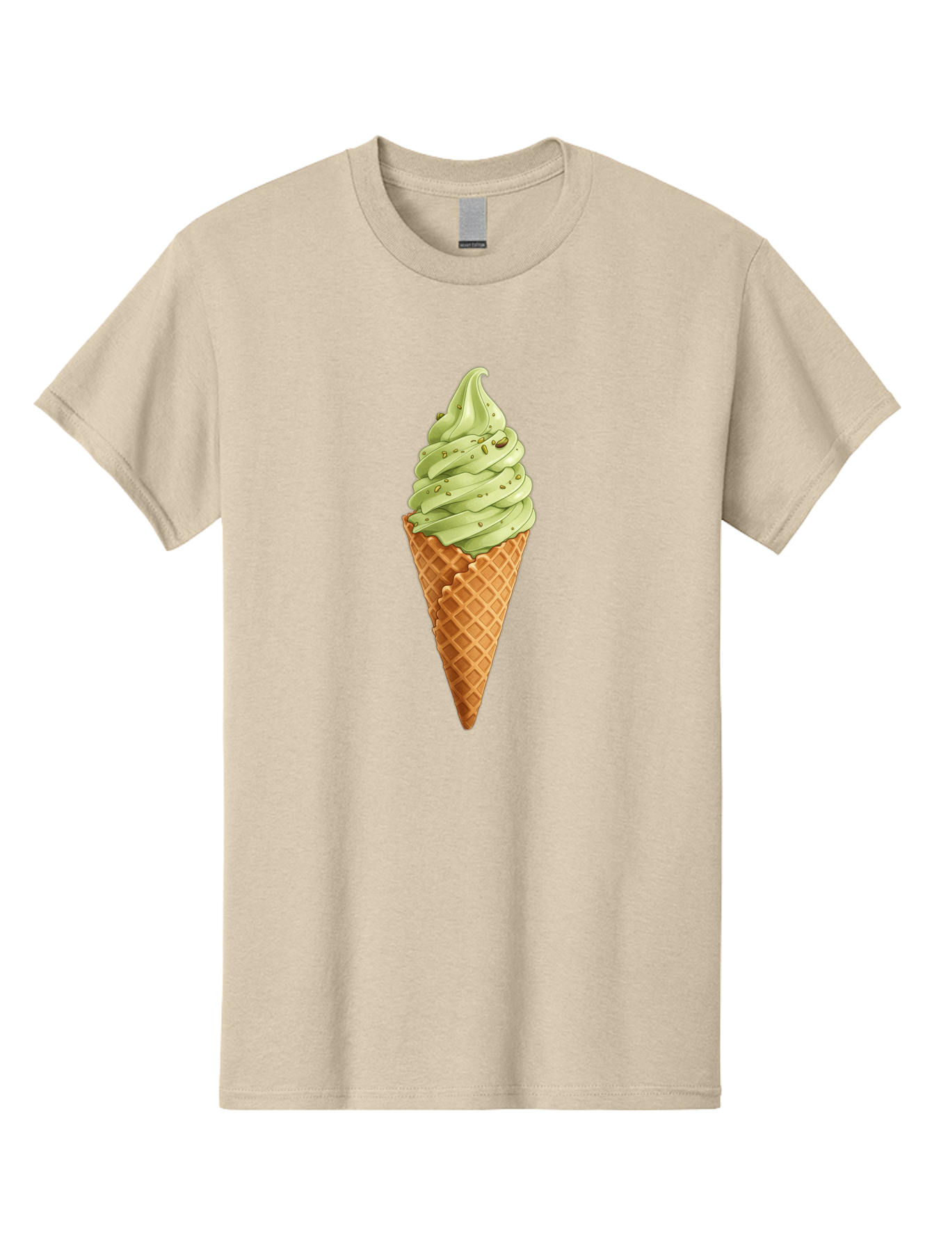 matcha-ice-cream-cone Men's Graphic Tee, 100% Cotton, Comfortable Casual Summer Wear, Machine Washable, matcha ice cream, soft serve ice cream, waffle cone, green tea flavor, sweet treat, summer dessert, ice cream cone, creamy texture BAA992