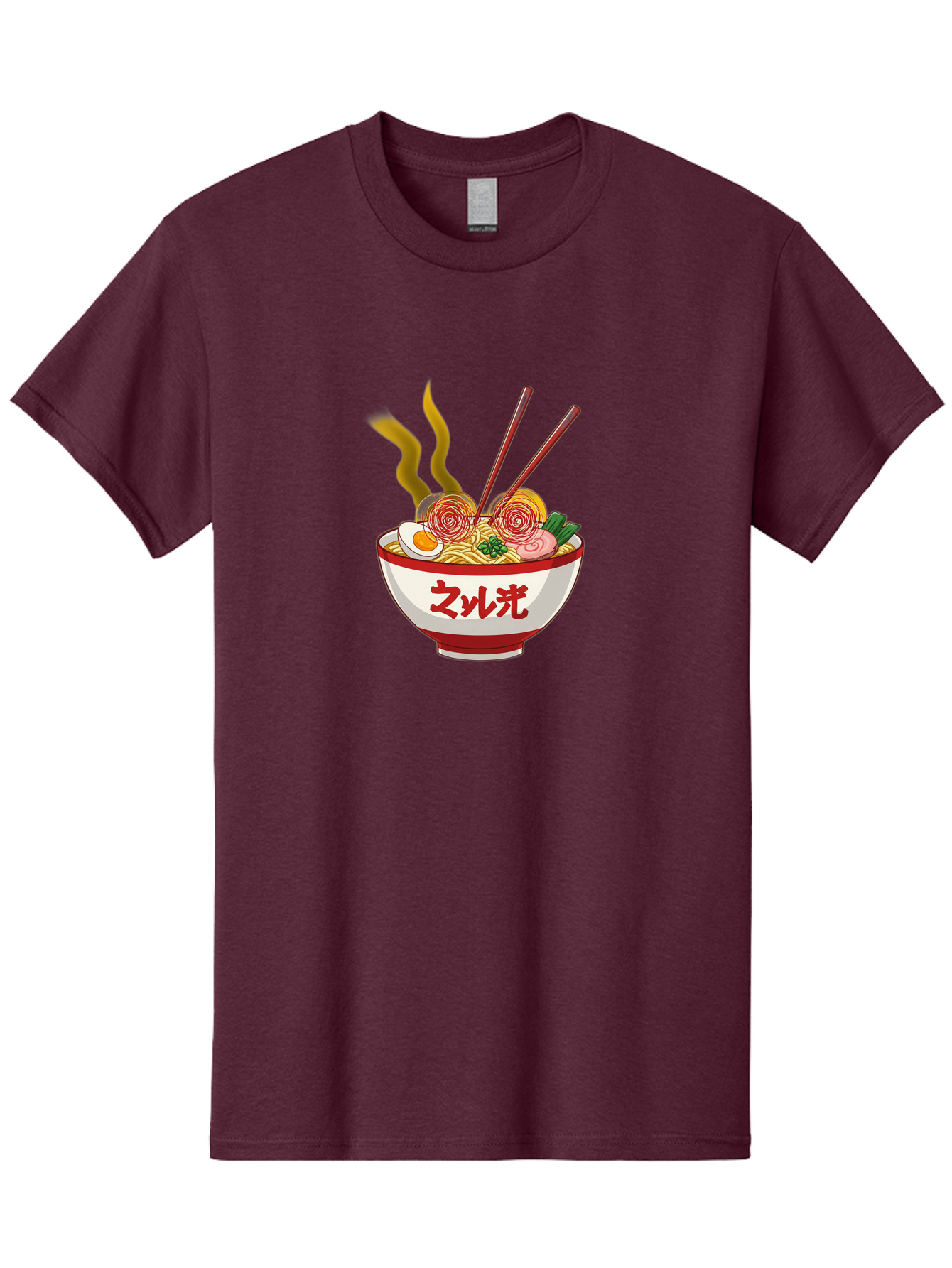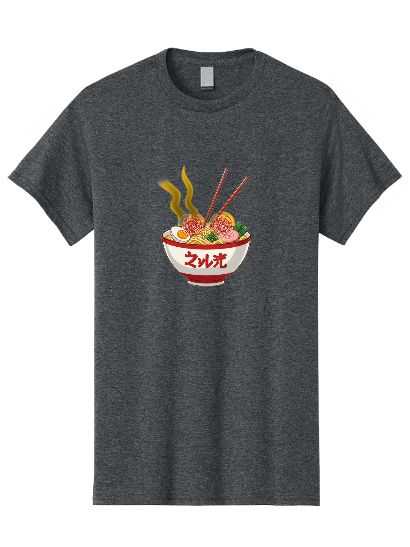 null-guang-ramen Men's Graphic Tee, 100% Cotton, Comfortable Casual Summer Wear, Machine Washable, steaming hot ramen, Japanese noodle soup, savory broth, boiled egg, sliced pork, green onions, chopsticks, Naruto swirls, delicious meal, Asian cuisine, comfort food BAB048