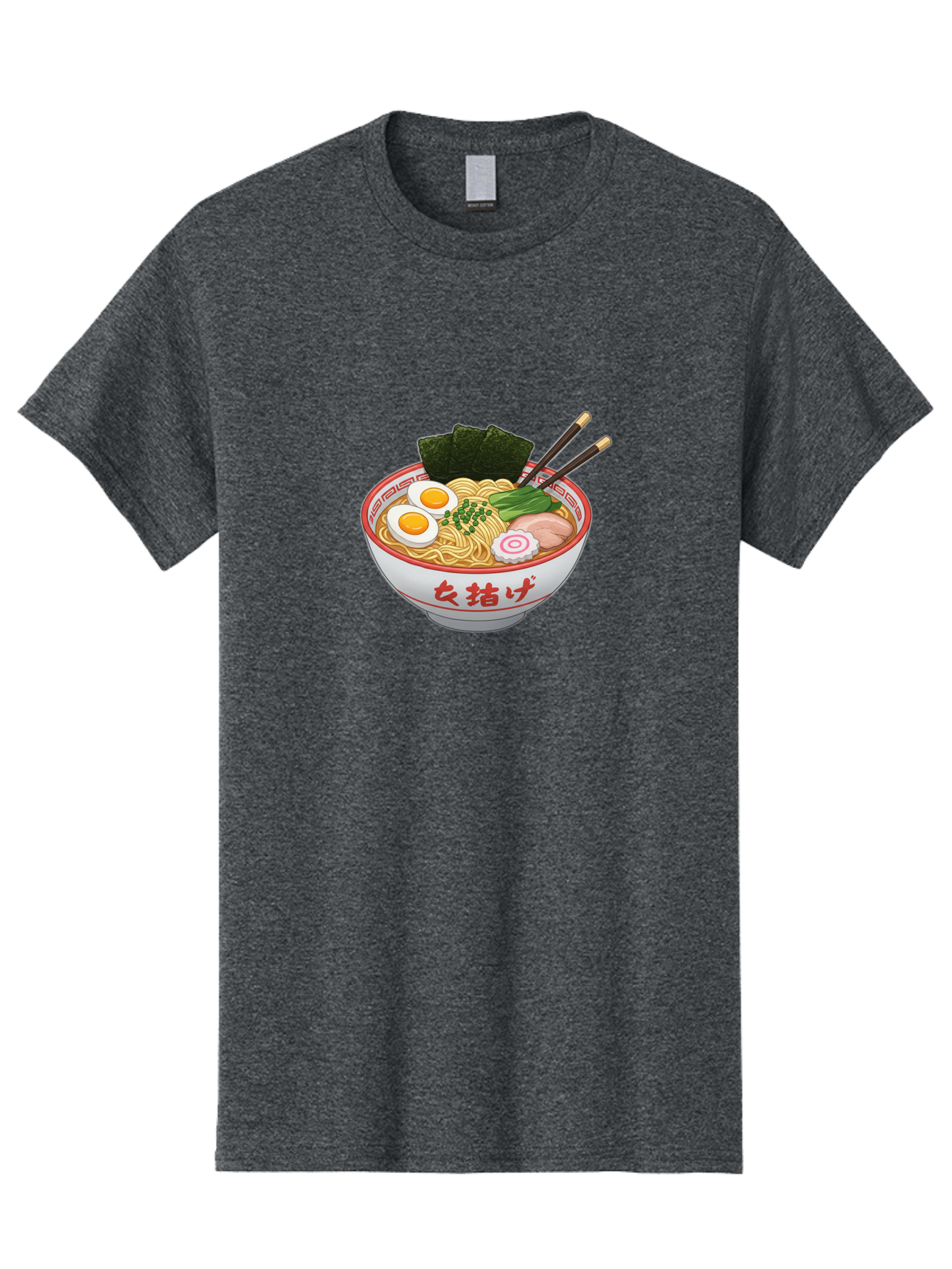 Onna-Jirage-Ramen Men'S Graphic Tee, 100% Cotton, Comfortable Casual Summer Wear, Machine Washable, Ramen Bowl, Noodle Soup, Boiled Egg, Green Onions, Seaweed, Pork Slices, Narutomaki, Chopsticks, Japanese Cuisine, Onna Zuke Bab053