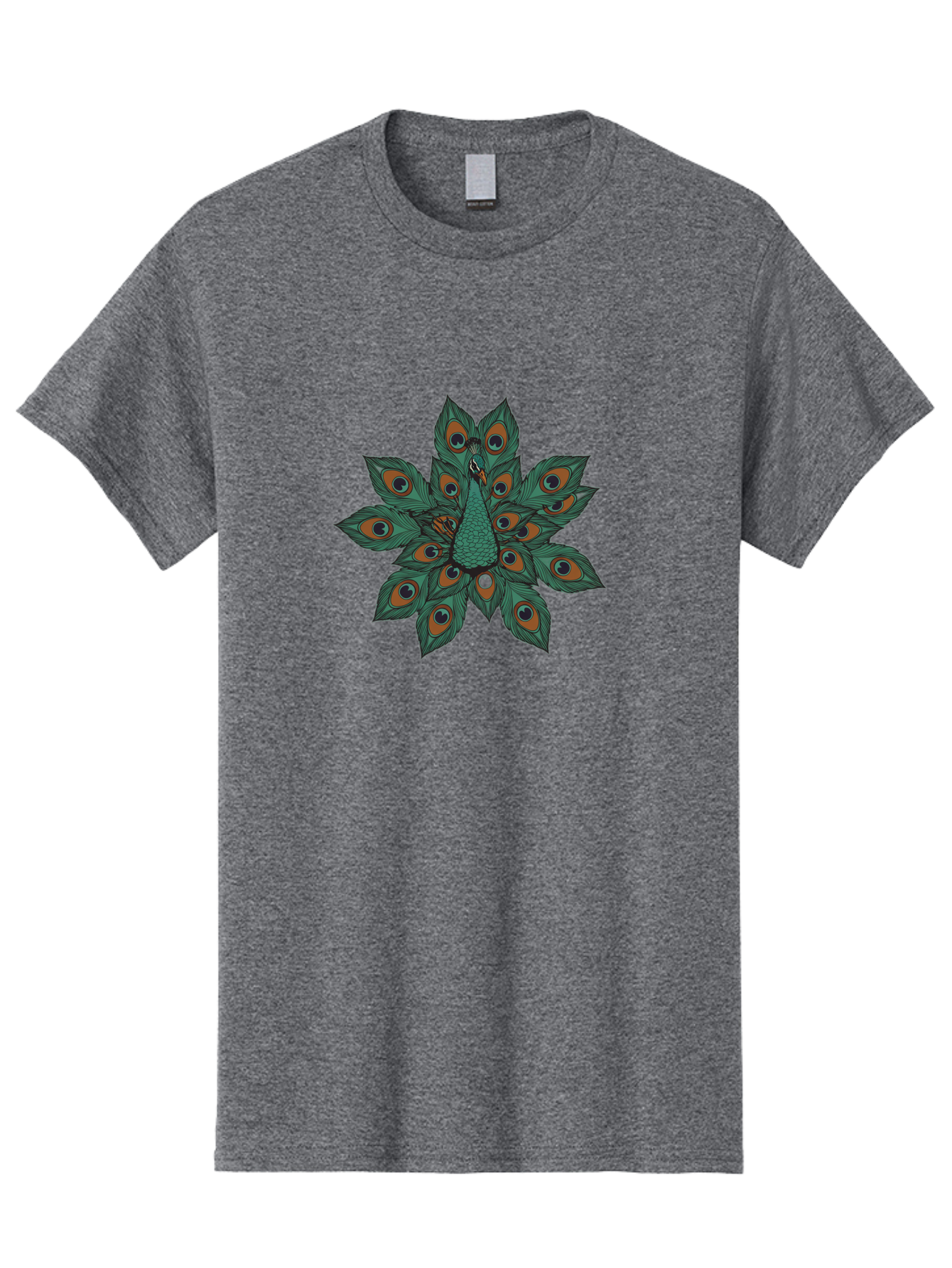 Peacock-31 Men'S Graphic Tee, 100% Cotton, Comfortable Casual Summer Wear, Machine Washable, Peacock Feather, Symmetrical Pattern, Vibrant Colors, Natural Beauty, Exotic Bird, Intricate Design, Circular Shape, Orange And Blue Hues, Bab094