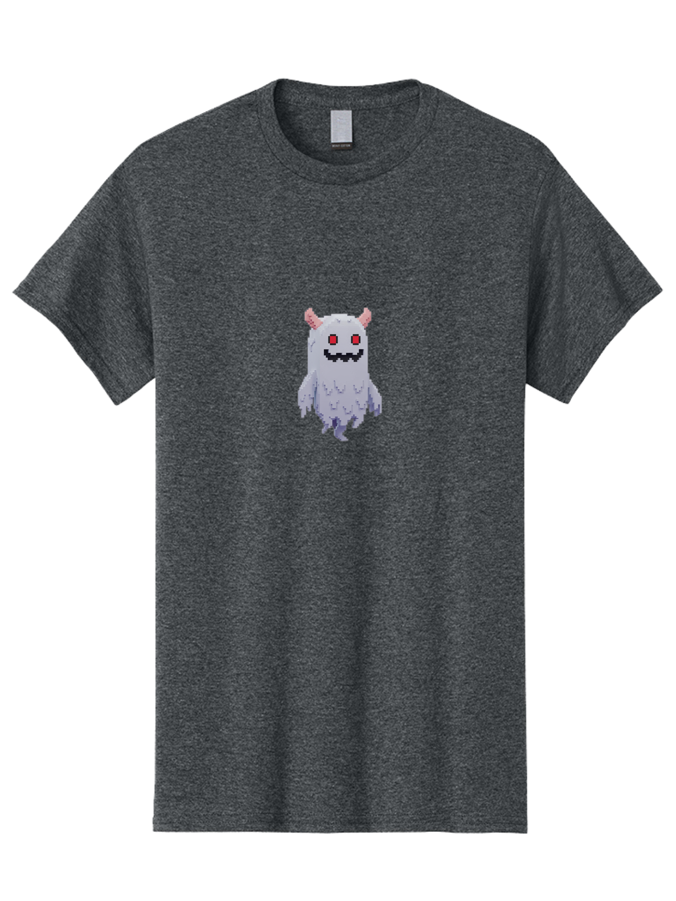 pixel-monster Men's Graphic Tee, 100% Cotton, Comfortable Casual Summer Wear, Machine Washable, pixel art character, cute monster, red eyes, black smile, pink horns, furry creature, cartoonish, fun design, playful graphics, retro gaming, adorable creature BAB200