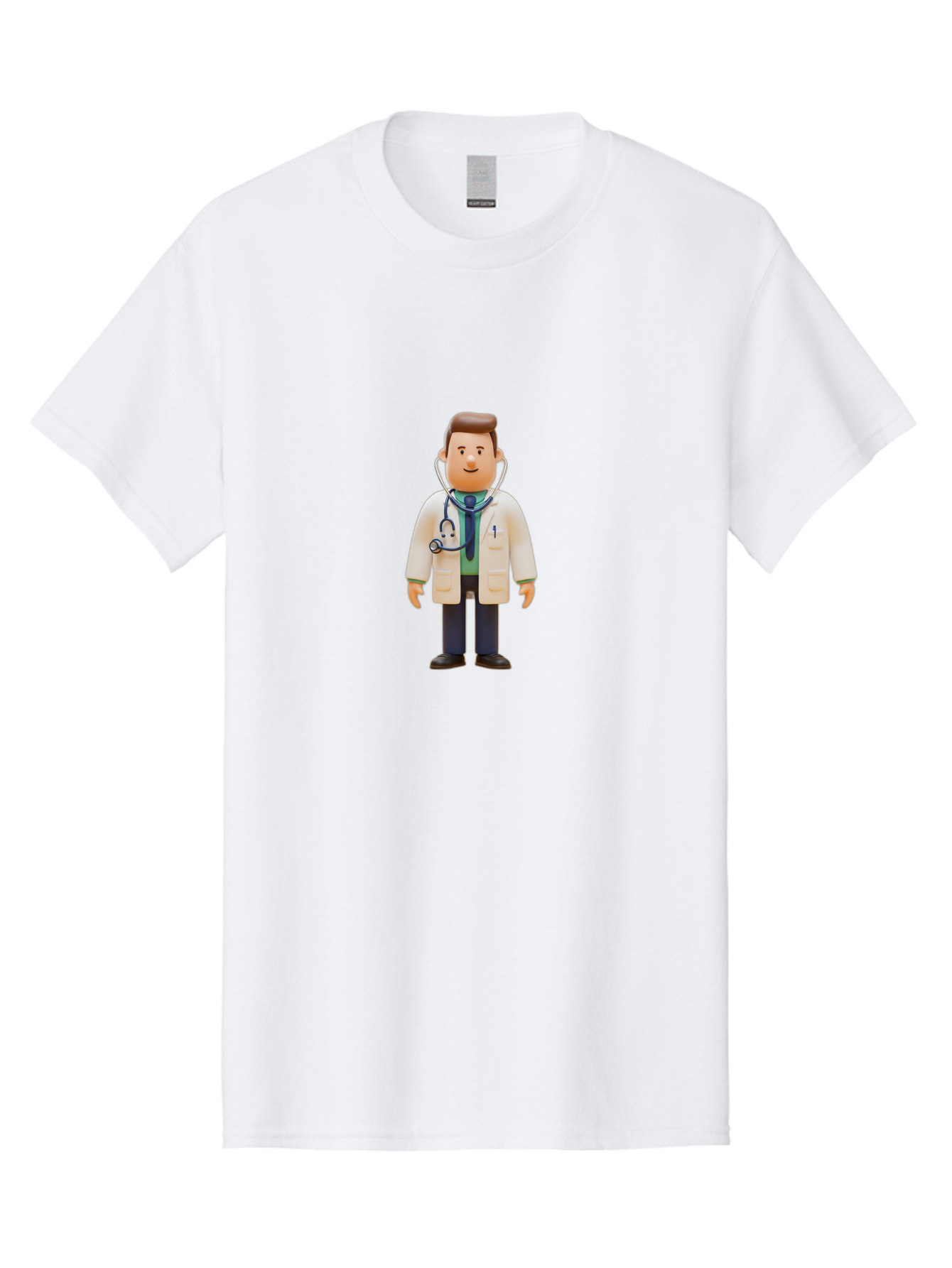 Playmobil-Doctor Men'S Graphic Tee, 100% Cotton, Comfortable Casual Summer Wear, Machine Washable, Cartoon Doctor, Medical Professional, Stethoscope Around Neck, White Lab Coat, Blue Tie, Playmobil Figure, Medical Illustration, Bab209