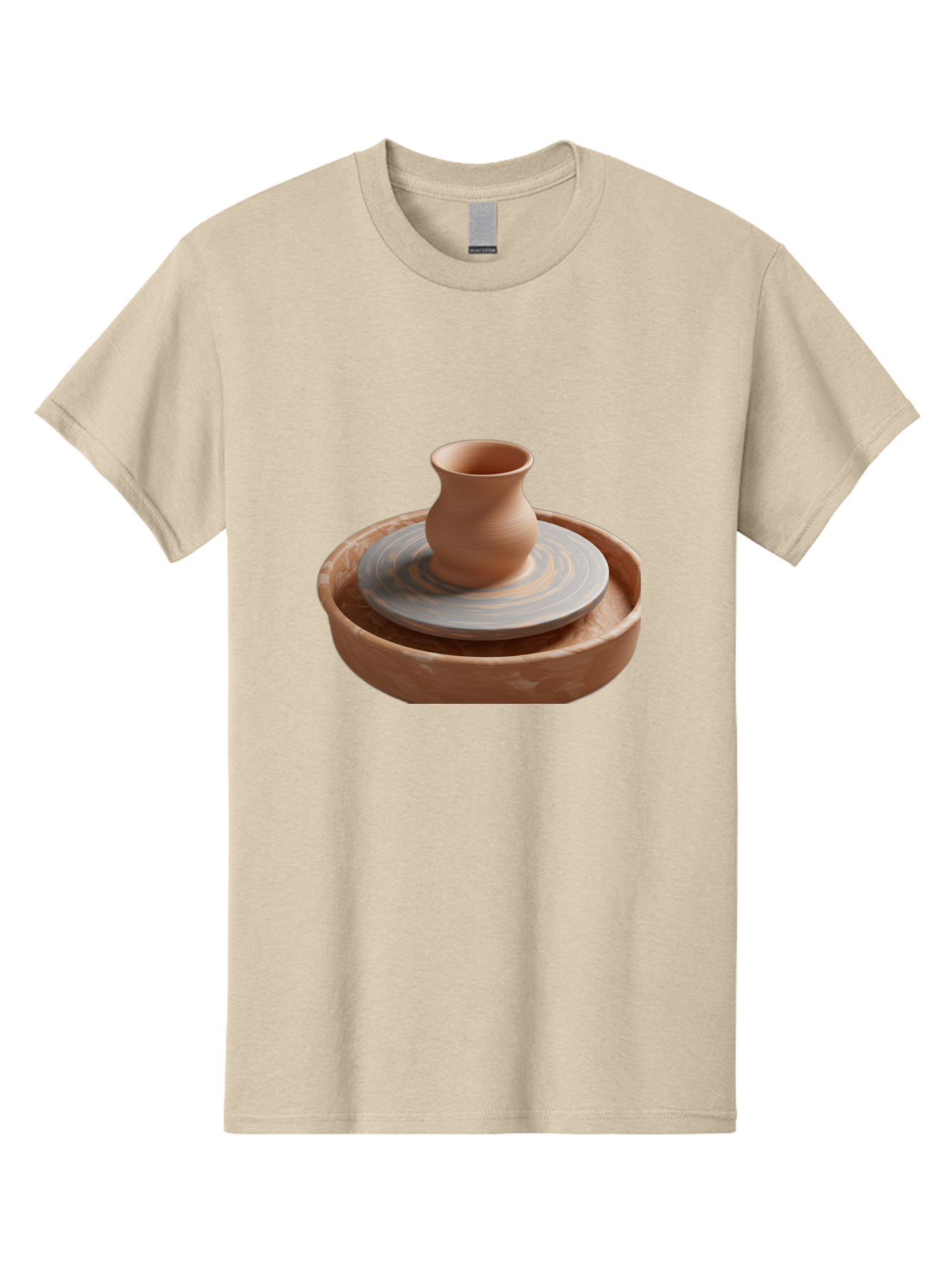 potter-s-wheel-5 Men's Graphic Tee, 100% Cotton, Comfortable Casual Summer Wear, Machine Washable, potter's wheel, clay pot, pottery making, ceramics, handmade, artisanal, creative process, craft, pottery wheel, clay vessel BAB236