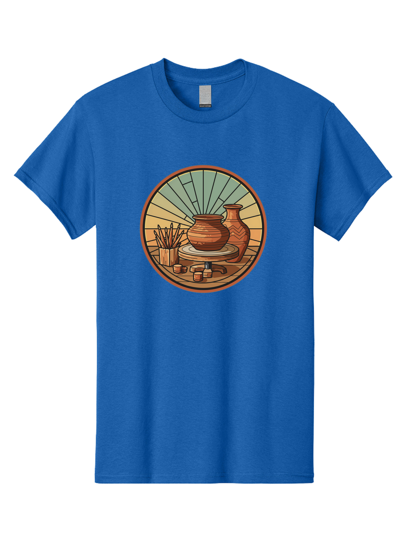 pottery-wheel-illustration Men's Graphic Tee, 100% Cotton, Comfortable Casual Summer Wear, Machine Washable, clay pot on pottery wheel, ceramic art, handmade pottery, pottery tools, clay vase, decorative ceramics, artisanal craftsmanship, pottery making, traditional pottery techniques, clay modeling BAB254