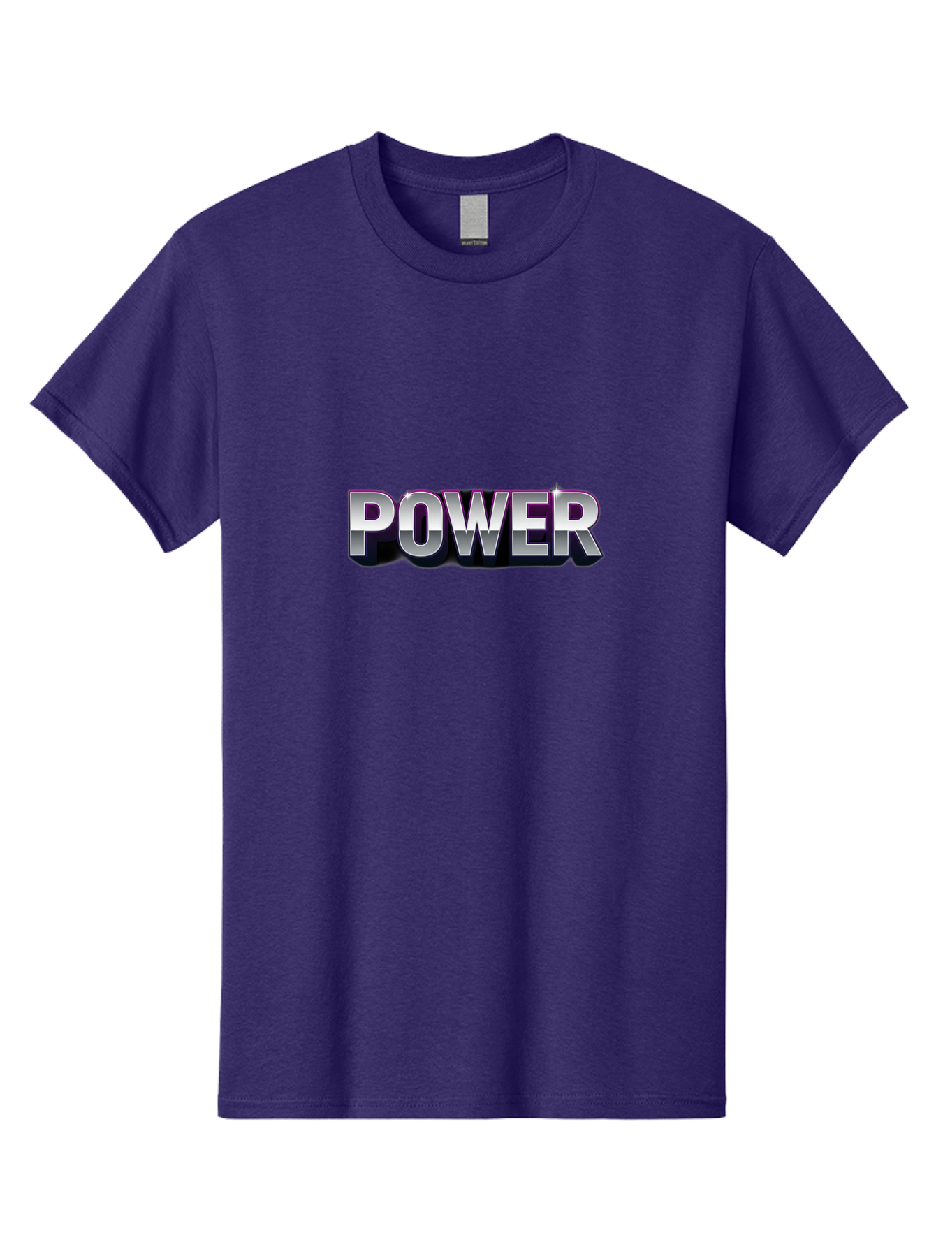 power Men's Graphic Tee, 100% Cotton, Comfortable Casual Summer Wear, Machine Washable, power, strength, energy, bold font, silver text, 3D effect, chrome finish, motivational, empowerment, energy boost BAB257