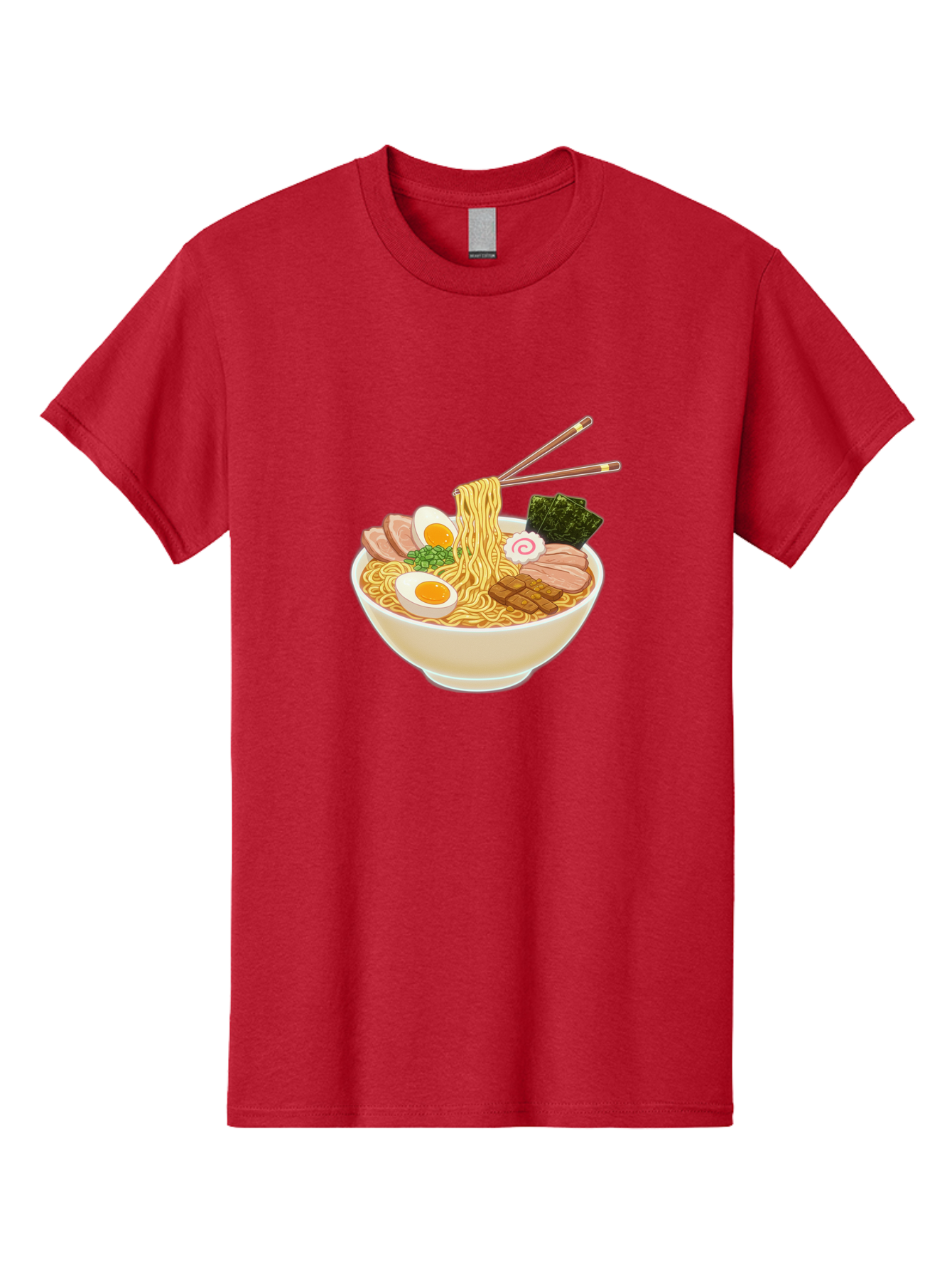 Ramen-Noodle-1 Men'S Graphic Tee, 100% Cotton, Comfortable Casual Summer Wear, Machine Washable, Delicious Ramen, Steaming Hot Noodles, Savory Pork Slices, Boiled Egg, Seaweed, Chopsticks, Japanese Cuisine, Noodle Soup, Comfort Food, Bab302