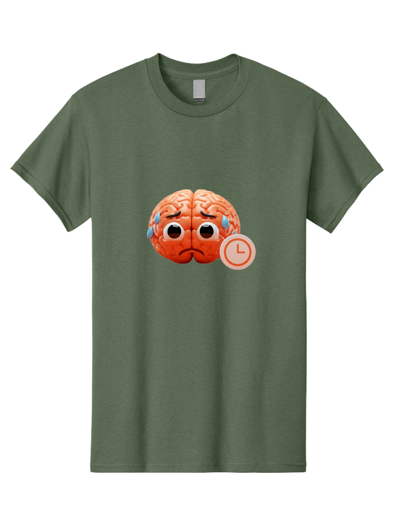 sad-brain Men's Graphic Tee, 100% Cotton, Comfortable Casual Summer Wear, Machine Washable, sad brain, stressed brain, anxiety, frowning face, tears, mental health, brain fatigue, stress emotions, frustration, cartoon brain BAB371