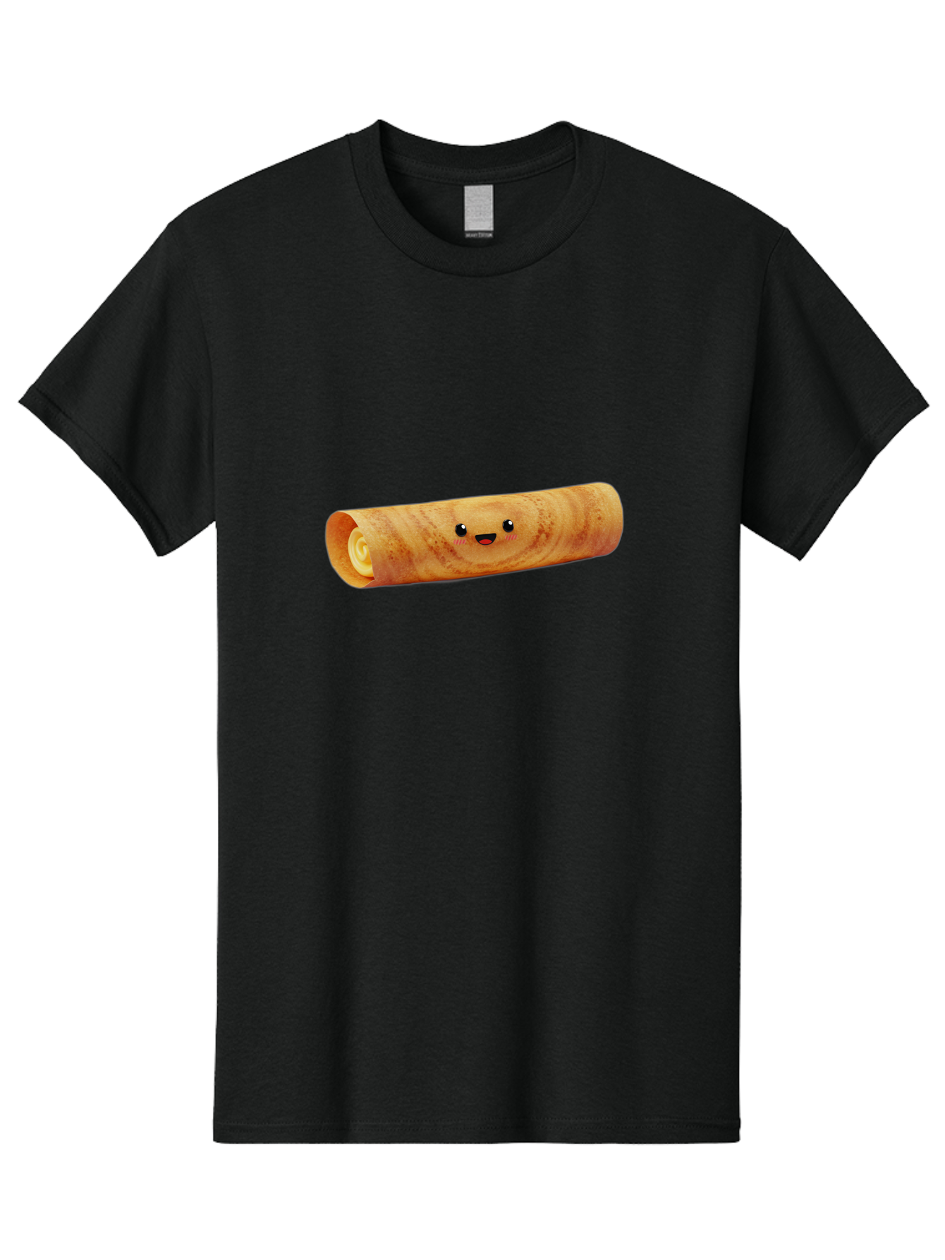 smiling-crepe-1 Men's Graphic Tee, 100% Cotton, Comfortable Casual Summer Wear, Machine Washable, crepe with face, happy expression, food character, sweet treat, crepe roll, french dessert, cartoon food, cute pastry, dessert illustration BAB409