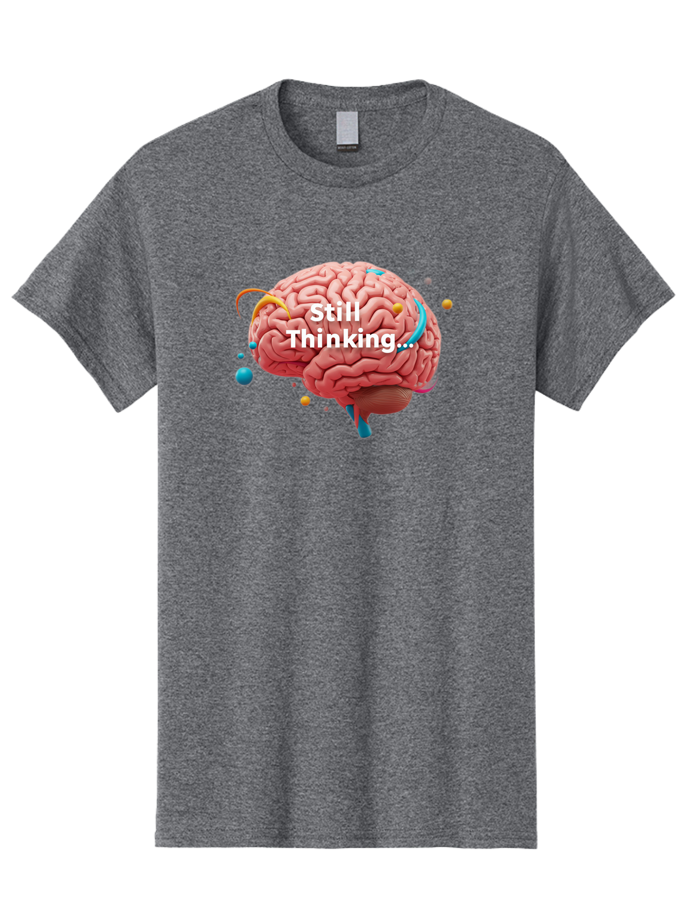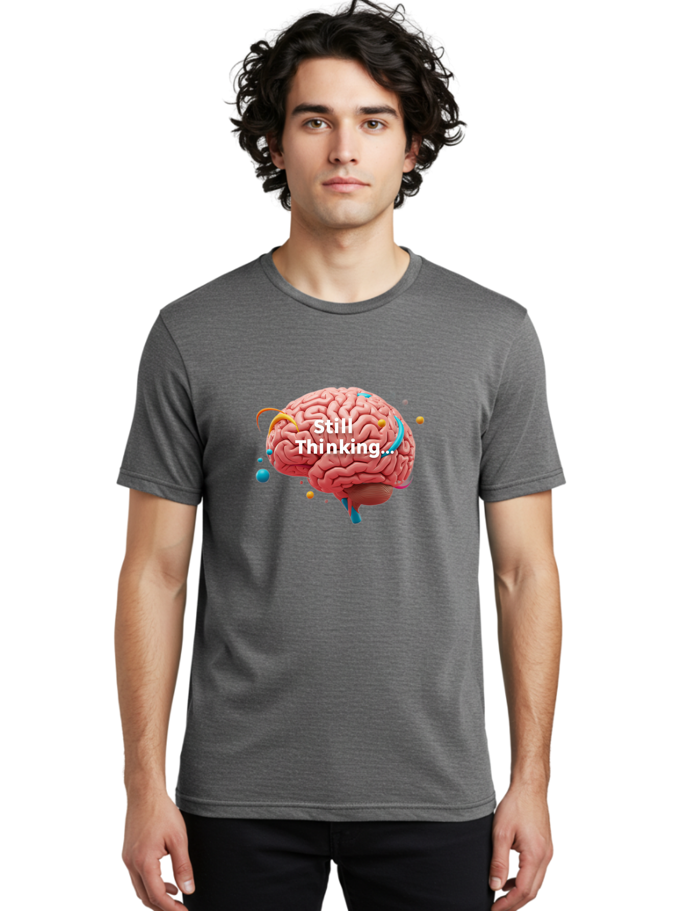 Still-Thinking-Brain-1 Men'S Graphic Tee, 100% Cotton, Comfortable Casual Summer Wear, Machine Washable, Human Brain, Creative Thinking, Abstract Shapes, Colorful Orbs, Idea Generation, Problem-Solving, Cognitive Process, Brainstorming, Bab468
