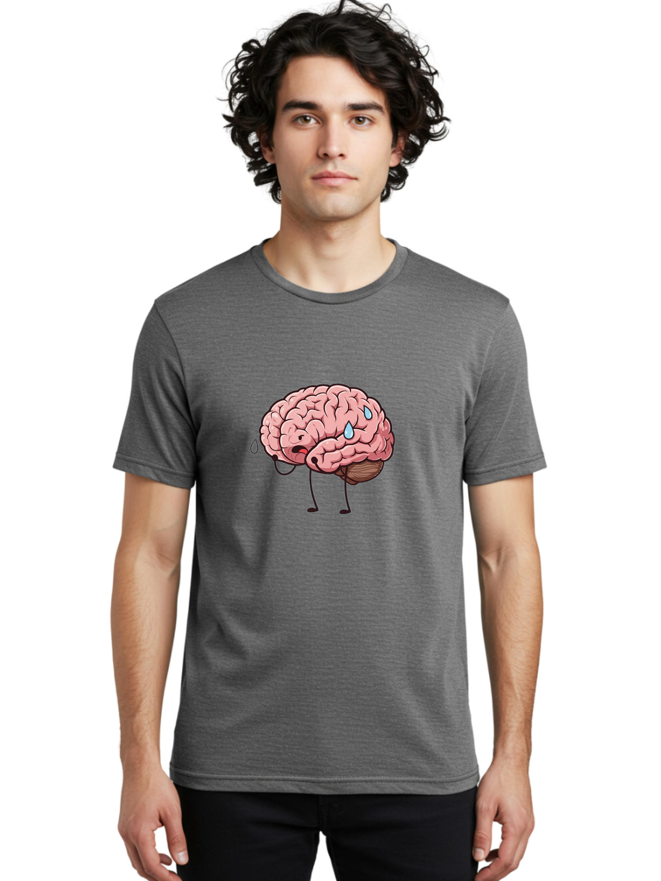 Stressed-Brain Men'S Graphic Tee, 100% Cotton, Comfortable Casual Summer Wear, Machine Washable, Stressed Brain, Worried Expression, Cartoon Brain, Mental Exhaustion, Brain Drain, Tiredness, Frustrated Face, Anthropomorphic Brain Bab475