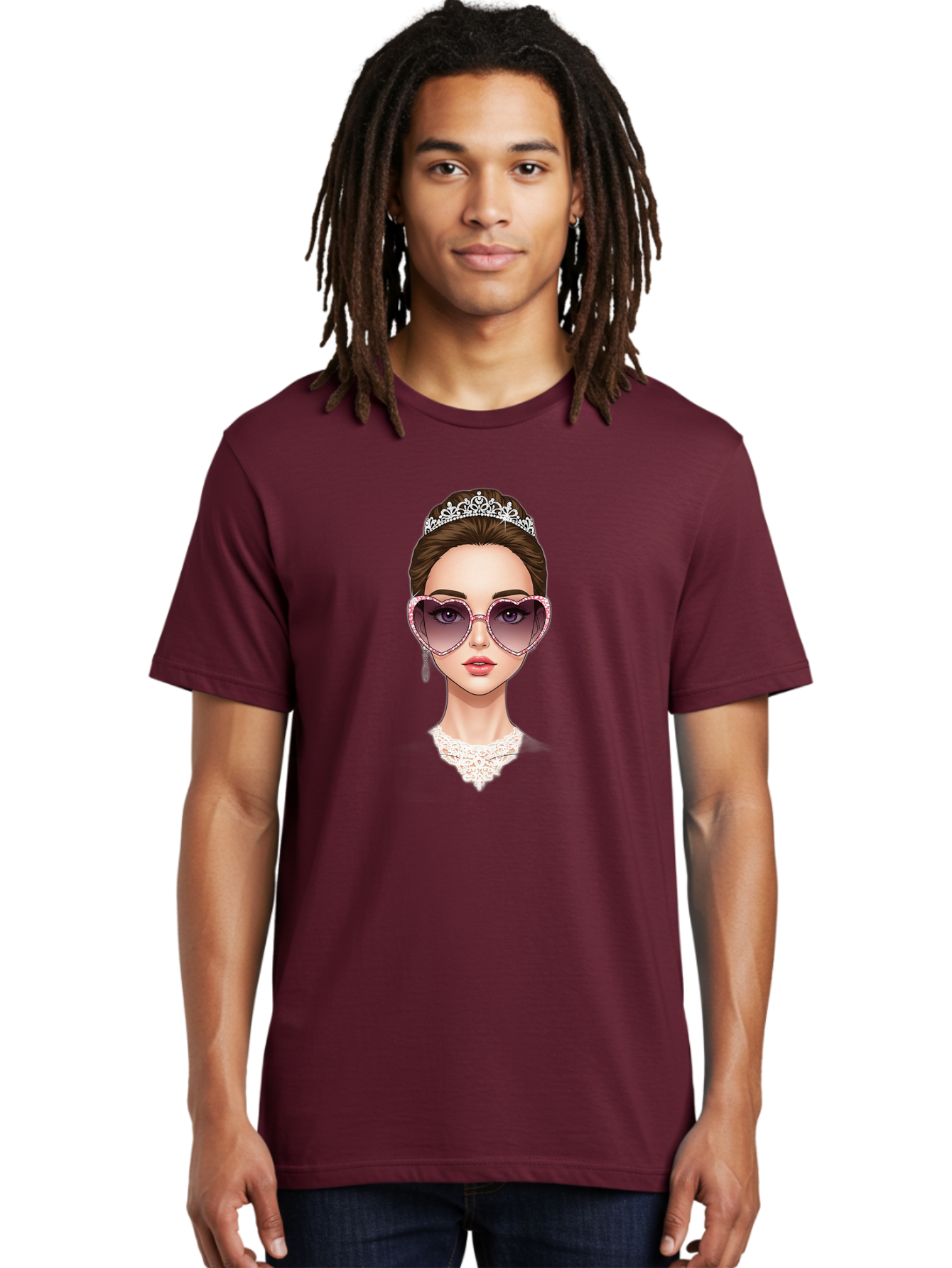 Tiara-Girl Men'S Graphic Tee, 100% Cotton, Comfortable Casual Summer Wear, Machine Washable, Princess Illustration, Heart-Shaped Sunglasses, Tiara Accessory, Elegant Jewelry, Fashionable Woman, Trendy Eyewear, Glamorous Style, Bab536