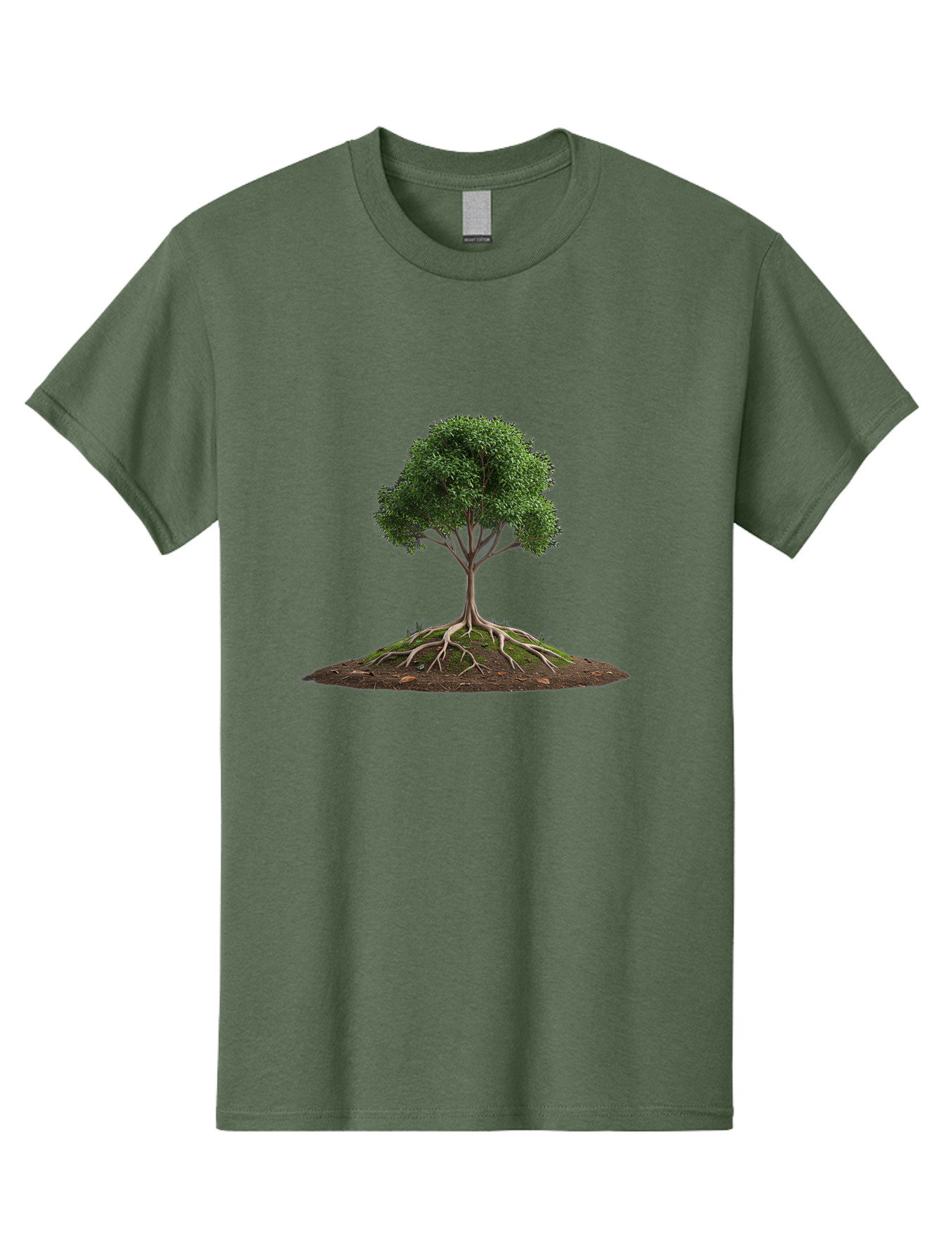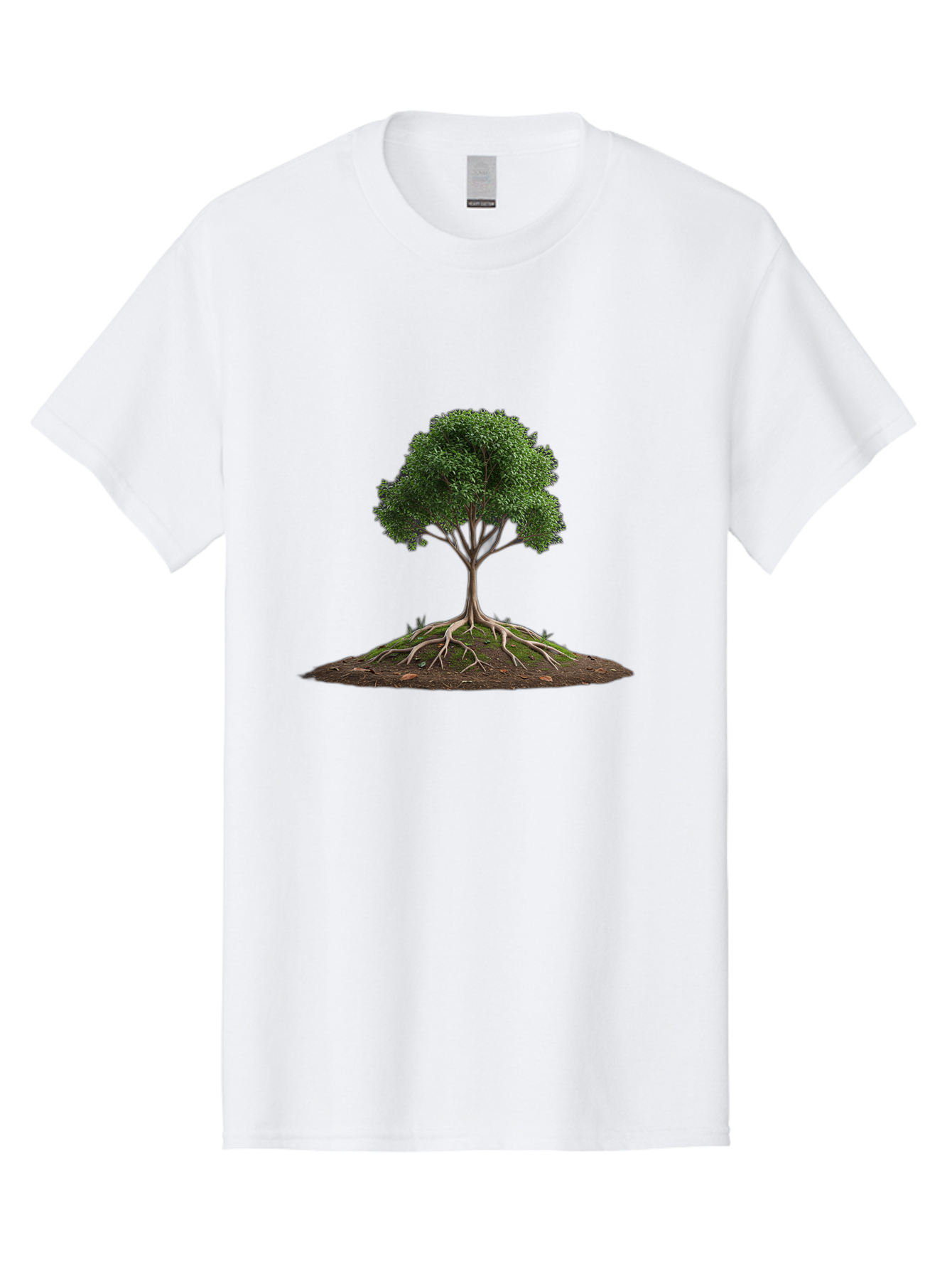 tree-with-exposed-roots Men's Graphic Tee, 100% Cotton, Comfortable Casual Summer Wear, Machine Washable, tree with exposed roots, green leaves, earthy tones, natural scenery, outdoor landscape, growth, foliage, branches, trunk, sprouts BAB550