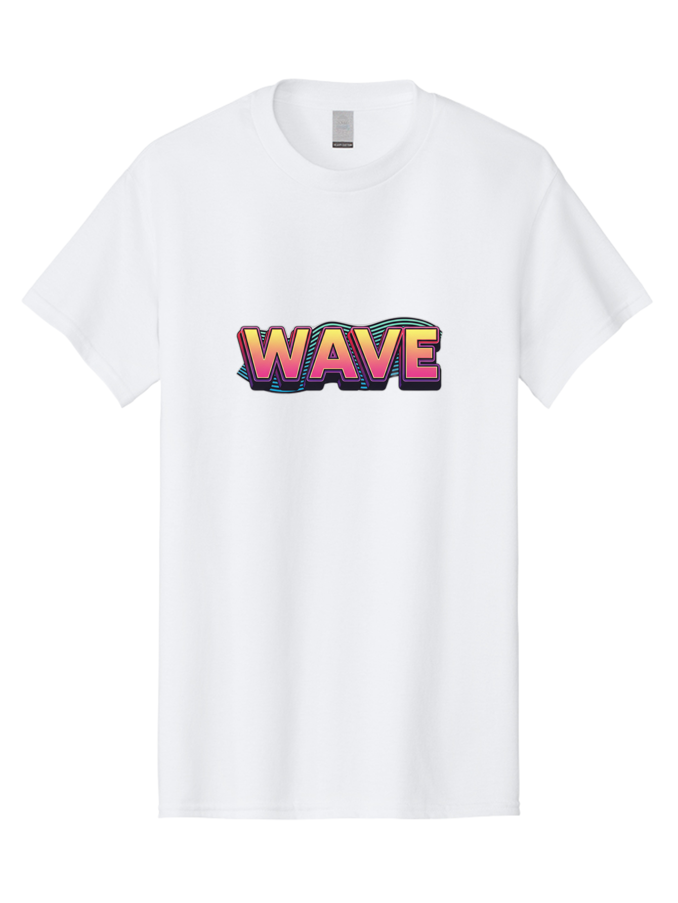 wave Men's Graphic Tee, 100% Cotton, Comfortable Casual Summer Wear, Machine Washable, stylish typography, gradient text, wavy design, vibrant colors, modern graphics, bold font, retro aesthetic, colorful illustration BAB578