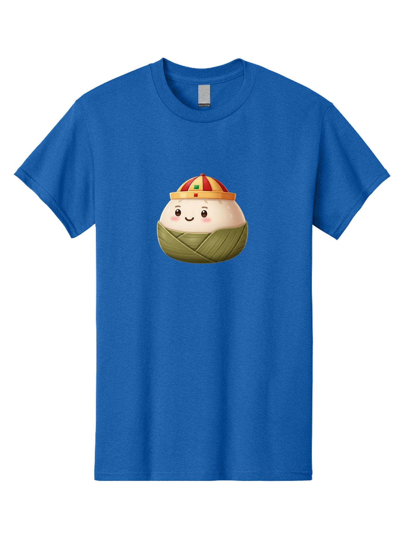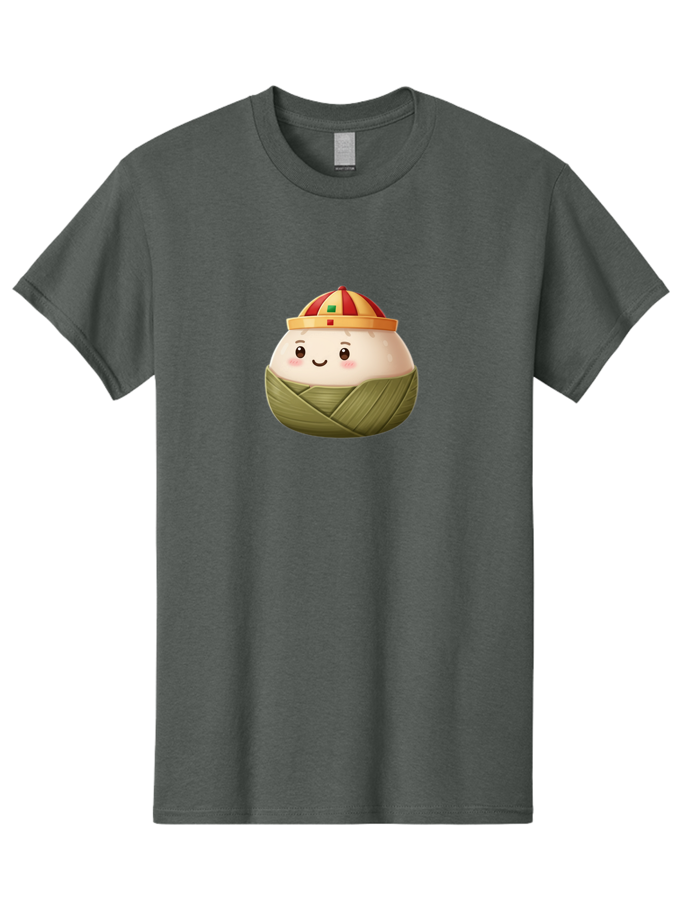zongzi Men's Graphic Tee, 100% Cotton, Comfortable Casual Summer Wear, Machine Washable, cartoon dumpling, Chinese cuisine, wrapped in leaves, smiling face, festive hat, traditional food, cultural heritage, Asian delicacy, cute character BAB609