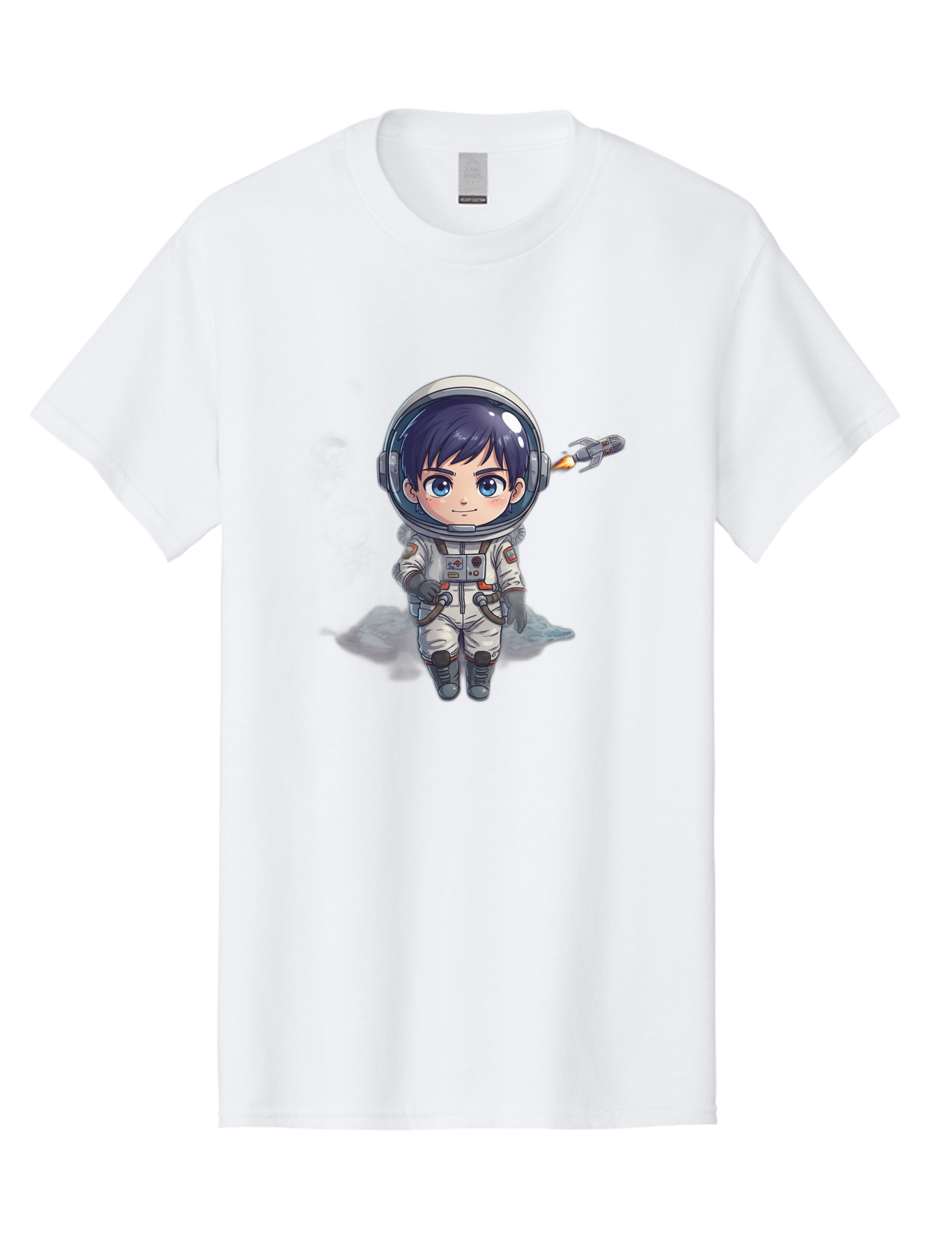 astronaut-boy Men's Graphic Tee, 100% Cotton, Comfortable Casual Summer Wear, Machine Washable, cartoon astronaut, chibi character, space suit, helmet, blue eyes, dark hair, rocket pack, adventure, cartoon style, kawaii art, futuristic, space exploration BAB649
