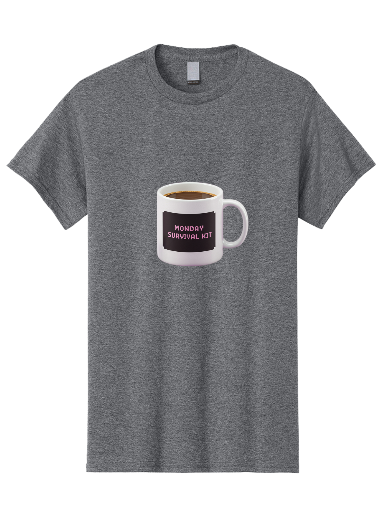 monday-survival-kit-2 Men's Graphic Tee, 100% Cotton, Comfortable Casual Summer Wear, Machine Washable, coffee mug, Monday motivation, survival kit, morning coffee, Monday blues, funny mug, office humor, coworker gift, coffee break BAE537
