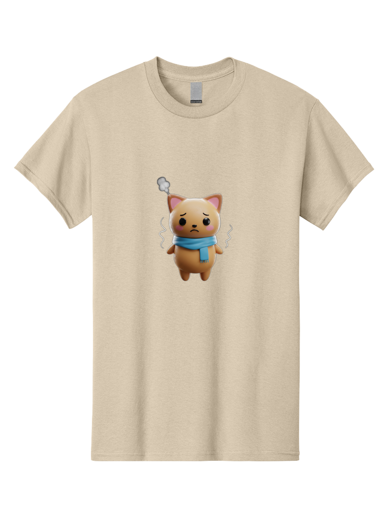 sick-cat Men's Graphic Tee, 100% Cotton, Comfortable Casual Summer Wear, Machine Washable, sick cat with scarf, frowning cat, cute cartoon characters, digital art, kawaii culture, cartoon animals, funny faces, 3D rendering BAF504